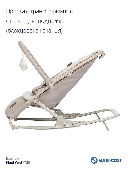 Шезлонг Kori 2 в 1 плавно и легко переходит от кресла-качалки к сиденью. Предназначены для детей с рождения и до 2 лет (максимальная нагрузка 15 кг).