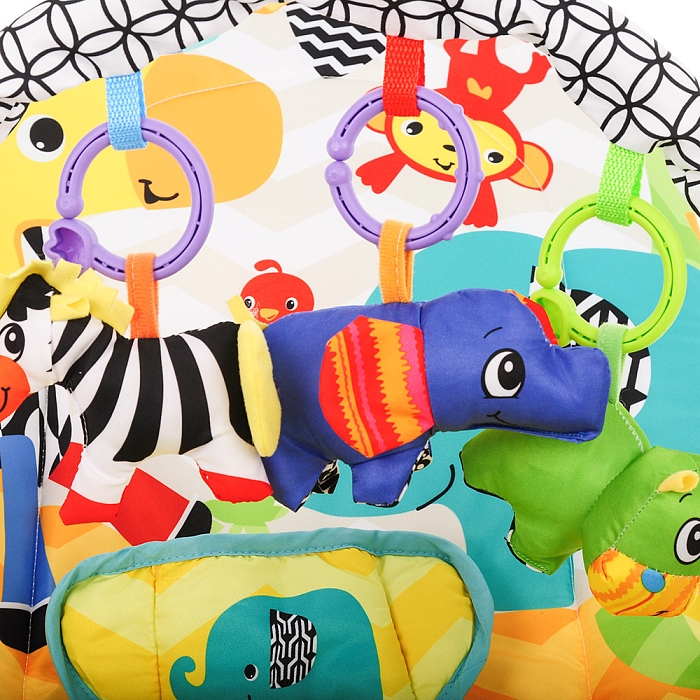 Съемная дуга с красочными игрушками надолго займут ребенка.