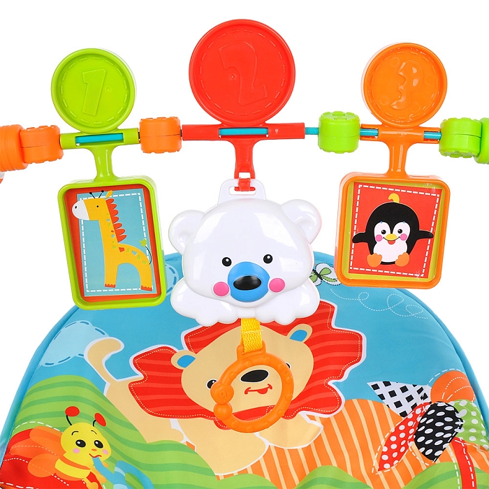 Съёмная дуга с интересными игрушками увлекут малыша в игру.