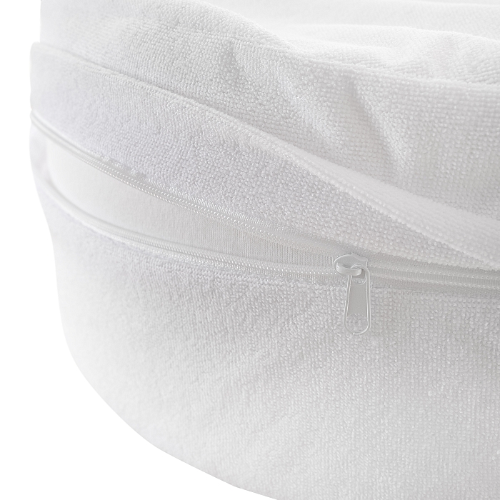 Комплектация: Основание колыбели-кокона из вязкого-эластичного пенополиуретана (пена с эффектом памяти); Два съемных чехла на резинке – плотный и трикотажный; Непромокаемый чехол на молнии; Валик под ножки; Пояс с липучками; Сумка-переноска.
