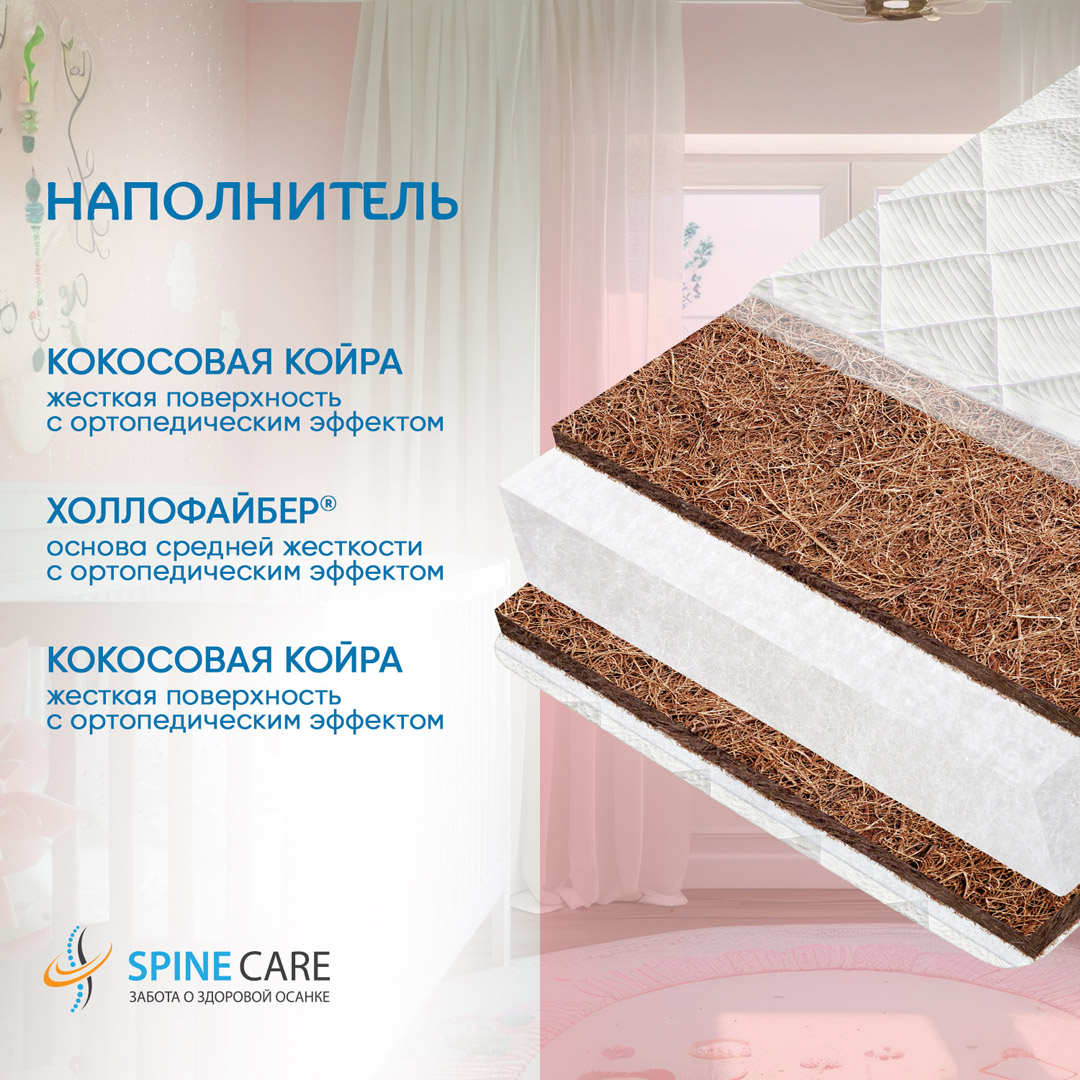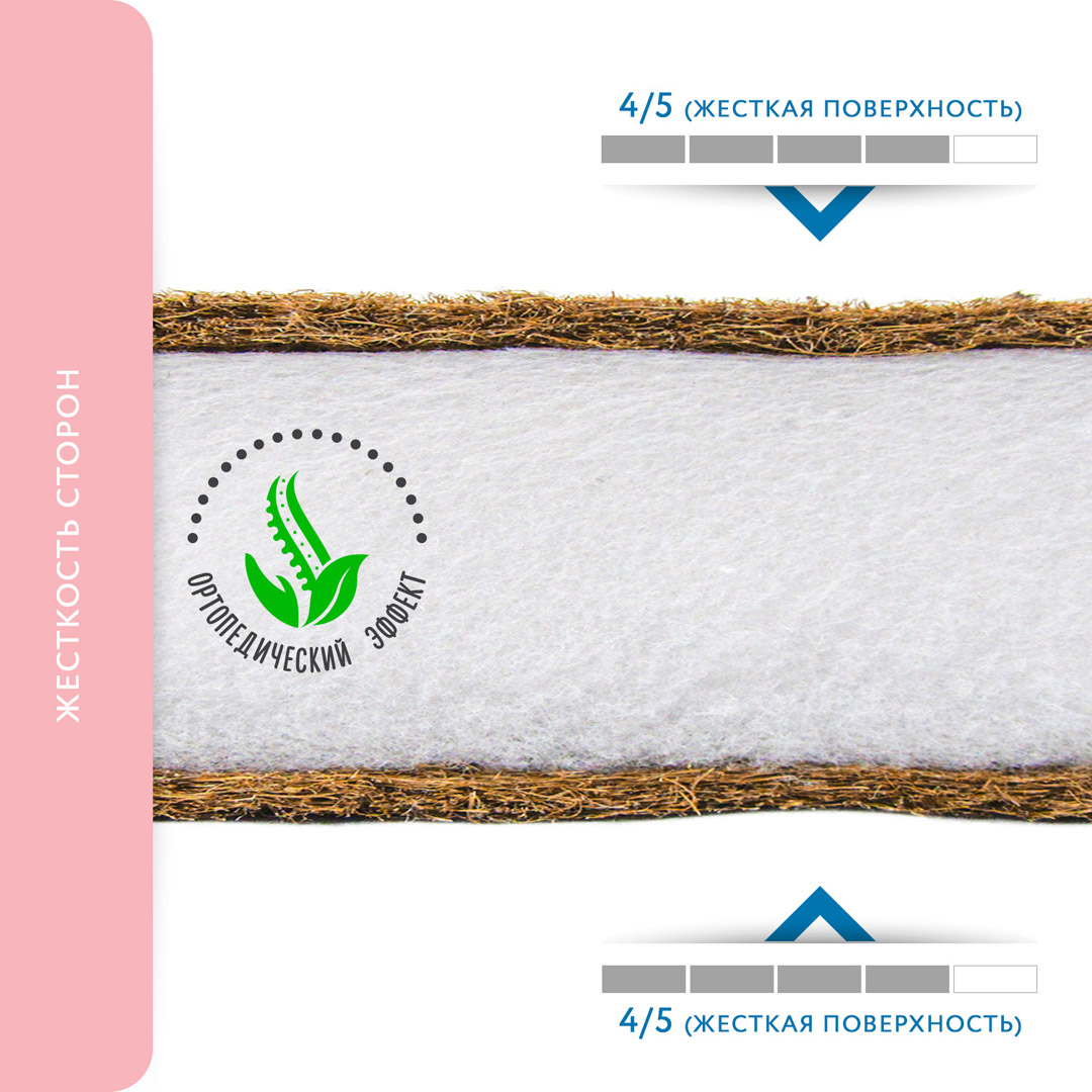 Матрас в кроватку Aria Premium 12 изготовлен с использованием латексированной кокосовой койры, обладающей антиаллергическими и антибактериальными свойствами.