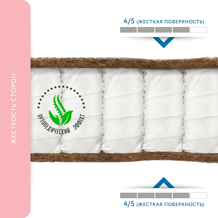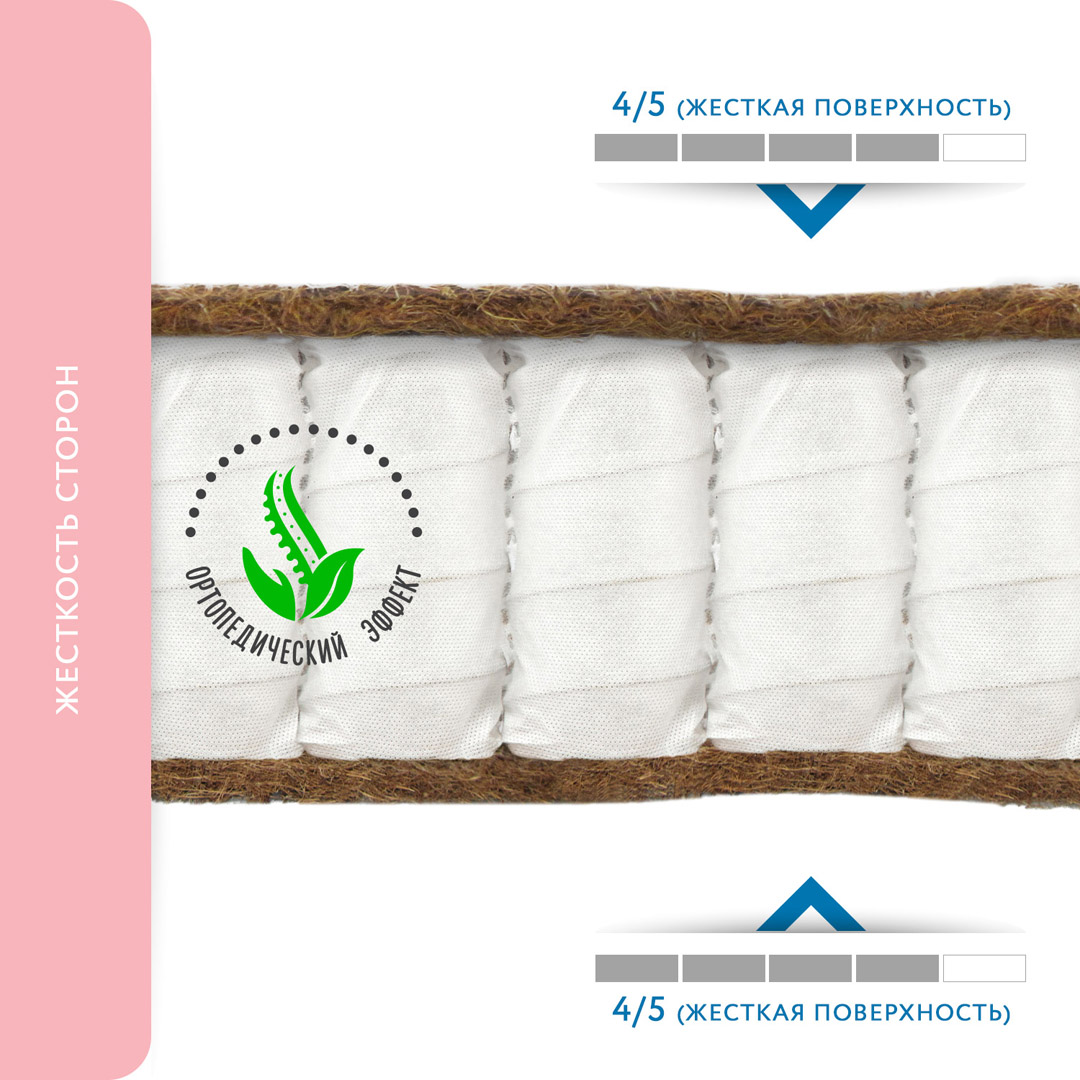 100% натуральный наполнитель высокого качества. Этот эластичный и долговечный материал обеспечивает идеально ровную поверхность и не утрачивает форму на протяжении всего срока службы. Помимо прочности и износоустойчивости, кокосовые матрацы обладают рядом таких преимуществ, как гипоалергенность, влагоустойчивость (кокосовая койра не впитывает воду) и воздухопроницаемость. Идеальный материал для создания жестких и средней жесткости матрасов.