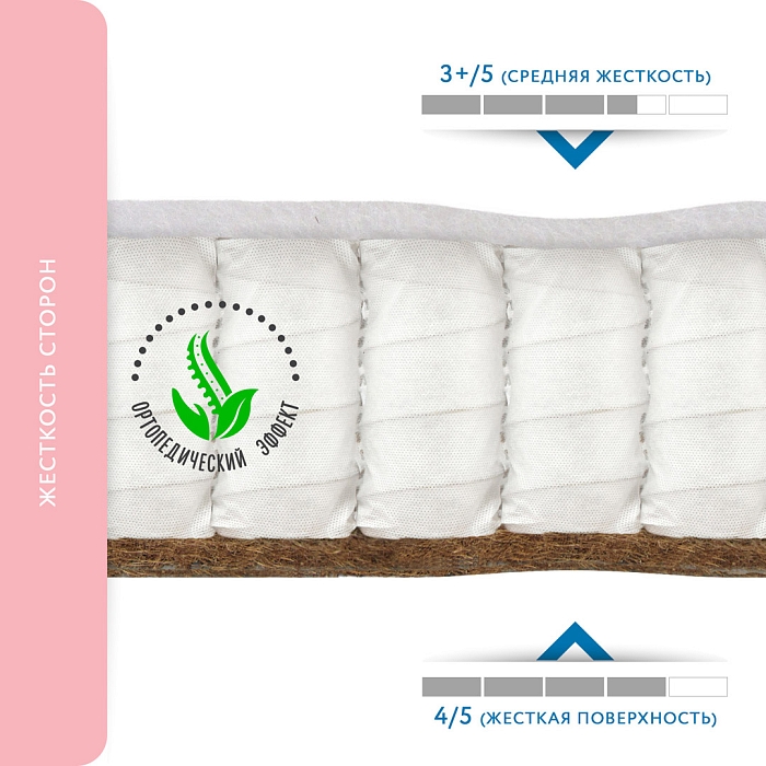 Матрас Molle Bloco Standart 12 изготовлен на базе блока независимых пружин с использованием латексированной кокосовой койры, обладающей антиаллергическими и антибактериальными свойствами.