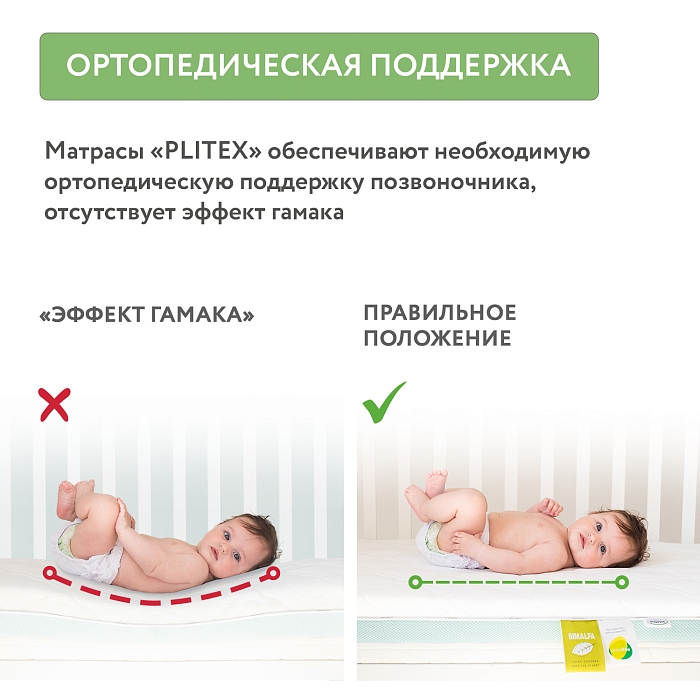 Матрас подходит для кроваток со спальным местом 120х60 см, предназначен для детей от рождения