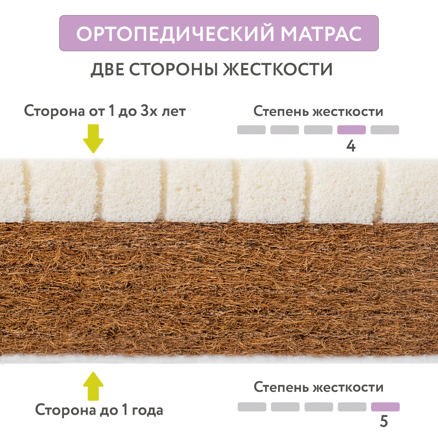 Универсальный беспружинный матрас Комфорт-Элит премиум-класса двусторонней жесткости. В матрасе используется классическое сочетание лучших, экологически чистых натуральных наполнителей: анатомического латекса и латексированной кокосовой койры. Они обладают идеальными для наполнителей матрасов свойствами: естественной вентилируемостью, упругостью, абсолютной гигиеничностью, антиаллергенностью и долговечностью. Жесткая кокосовая сторона идеально подойдет новорожденным, обеспечит правильное формирование позвоночника. После года ребенка можно укладывать на более мягкую сторону из латекса, она легко подстраивается под форму тела. Полностью натуральные наполнители создают идеальный для сна микроклимат.