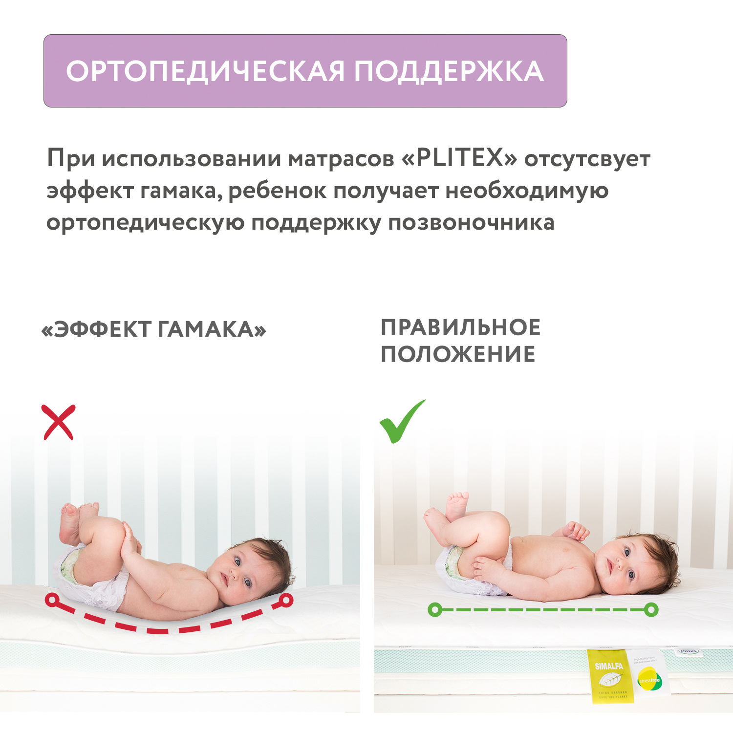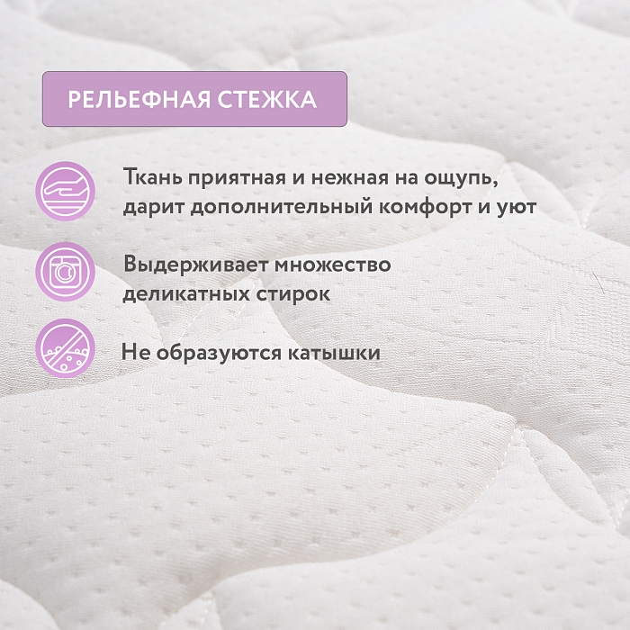 Съемный чехол матраса – двухслойный, прочный трикотажный материал StressFree – инновация на рынке матрасов. Верхний слой StressFree – 100% хлопок высшего качества, нижний слой – пористый, дышащий. Плотная стежка делает чехол воздушным, а специальная обработка ткани придает ей антистатический эффект. Статический заряд, возникающий от трения тканей постельного белья и пижамы, быстро и незаметно снимается с тела ребенка и выводится в воздух. Это успокаивает нервную систему и нормализует сон. Матрас рекомендуется детям в возрасте от 0 до 3 лет.