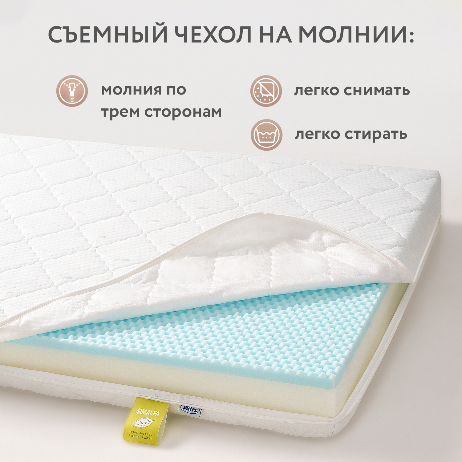 Удобство ухода. Съемный чехол на молнии по трем сторонам упрощает стирку и поддержание чистоты матраса.
