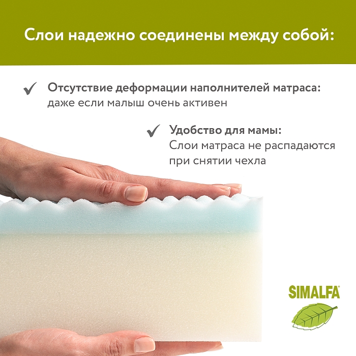 Экологичность. Слои наполнителей соединены безопасным составом на водной основе от SIMALFA, Швейцария.