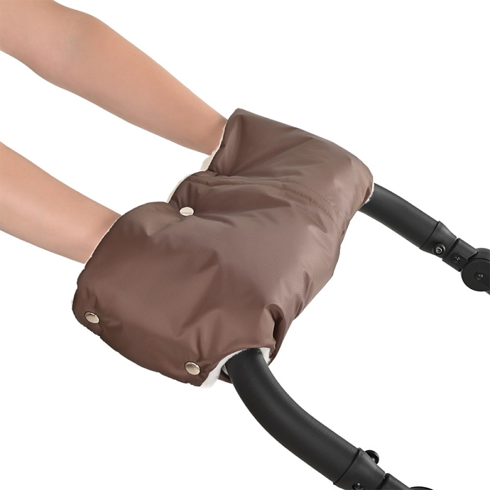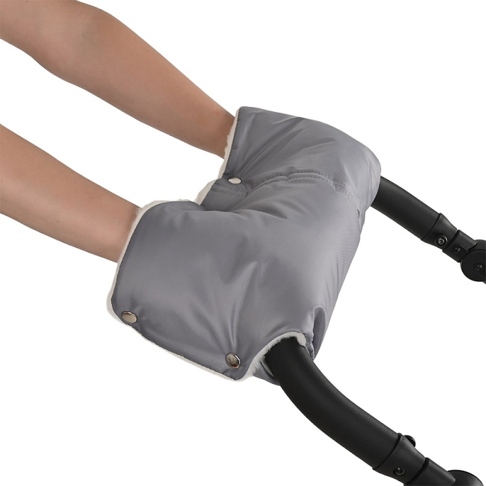 Внутри муфты расположена специальная меховая накладка, крепящаяся за поручень коляски.