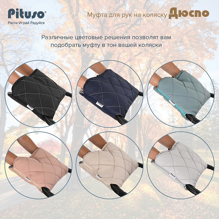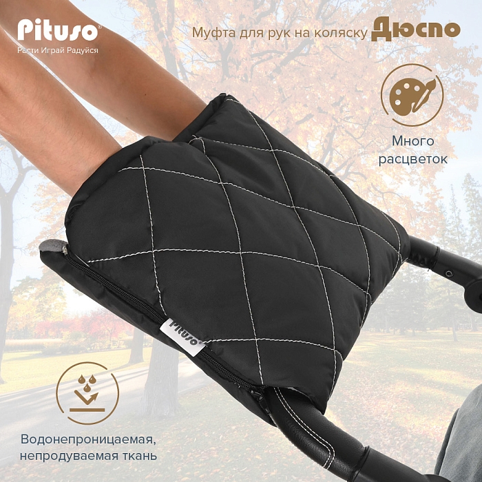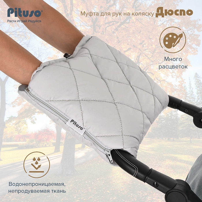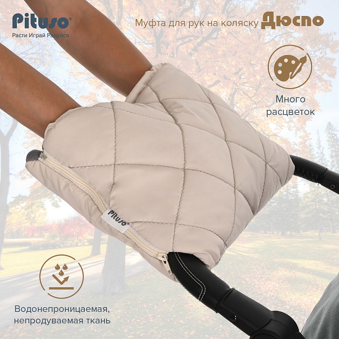 Муфта на ручку коляски очень легко одевается и защищает ваши руки от холода. Ткань муфты водоотталкивающая, она утеплена флисом. Различные цветовые решения позволят вам подобрать муфту в тон вашей коляски. Такая вещь просто незаменима во время зимних прогулок! Муфта имеет лаконичный дизайн, фиксируется на родительскую ручку коляски с помощью кнопок. Внешний слой хорошо защищает от влаги и ветра, муфта легко стирается. Она достаточно просторная, поэтому руки не испытывают стеснения.