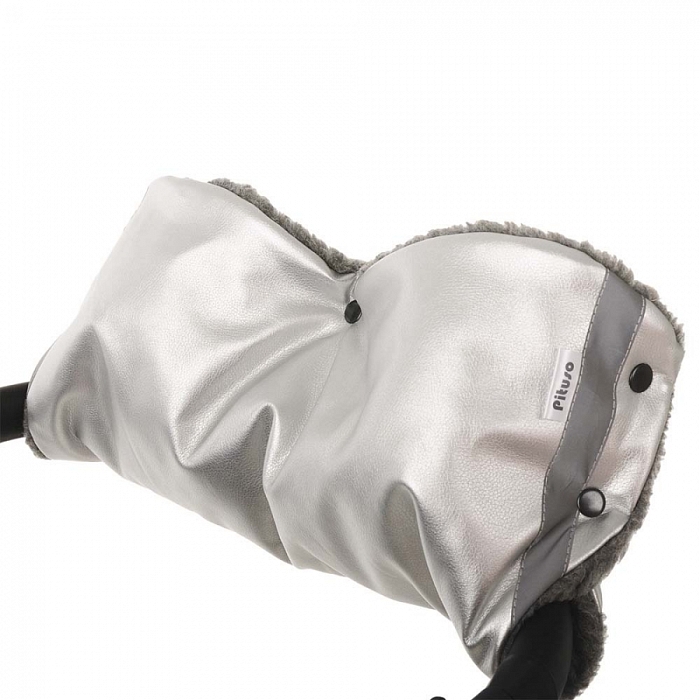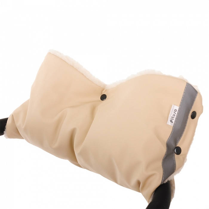 Муфта для рук на коляску Pituso шерстяной мех (белый) + экокожа Бронза