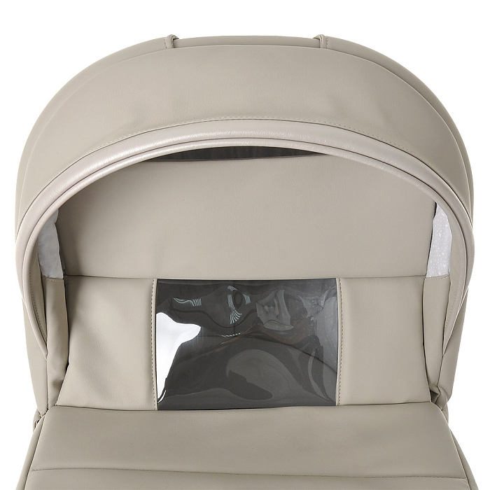 - Оснащена эргономичной ручкой, встроенной в капюшон и обтянутой экокожей. С ее помощью спящего малыша вы сможете переносить без проблем