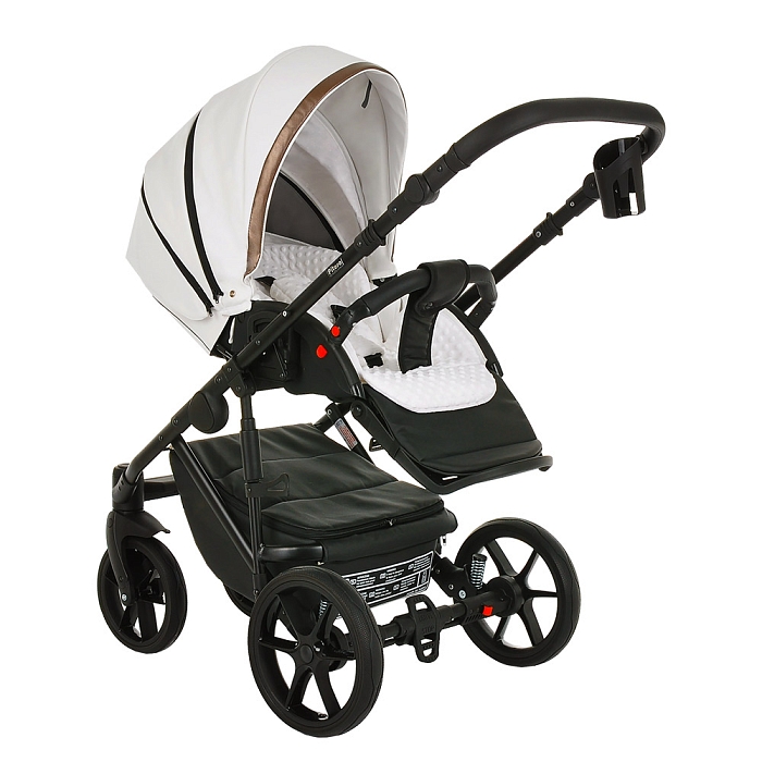 Рама с усиленной жесткостью не деформируется в процессе длительной эксплуатации. Усовершенствованная закрытая система амортизации как на передних, так и на задних колесах смягчает дорожную тряску. Обновленные колеса из полиуретана теперь с легкостью едут по любой поверхности, смягчая ход коляски. Маневренные передние колеса регулируются фиксаторами для свободного вращения или прямого движения. Новая система anti-wobble исключает колебание колес в процессе езды. Тормозная педаль с системой Comfy Stop расположена между задними колесами. Все колеса являются быстросъемными, что упрощает уход за коляской. Дополнительный амортизатор на раме позволяет еще больше облегчить ход коляски в любых условиях.