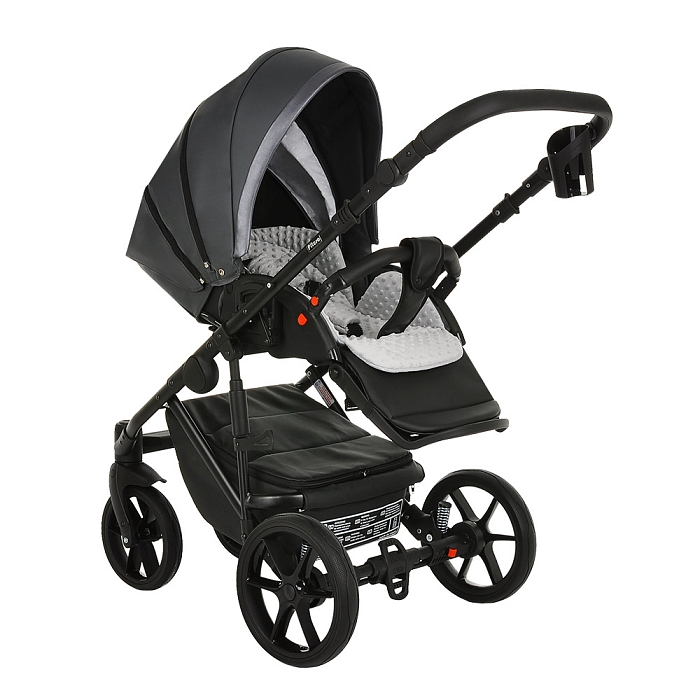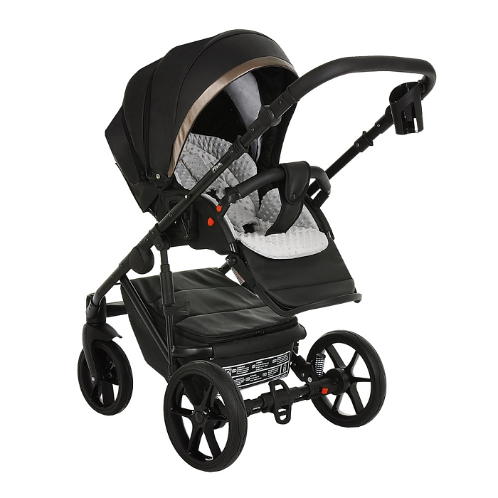 Благодаря увеличенному углу наклона спинки, сиденье в коляске рассчитано на использование с младенческого возраста ребенка. На самом нижнем уровне спинка сиденья опускается в полностью горизонтальное положение. Регулировка производится с помощью рычага, расположенного в задней части спинки коляски. Подножка имеет два положения, в верхнем удлиняет спальное место.