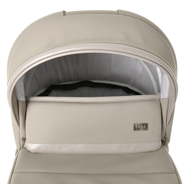 Непромокаемый капюшон с защитой от УФ-лучей UV50+ имеет козырек и сетчатую секцию под молнией. Регулировка капора производится поочередным нажатием на кнопки, которые расположены с внутренней стороны. В комплекте с коляской Luna вы получаете, подстаканник, дождевик и анти москитную сетку для комфортных прогулок в любых условиях.