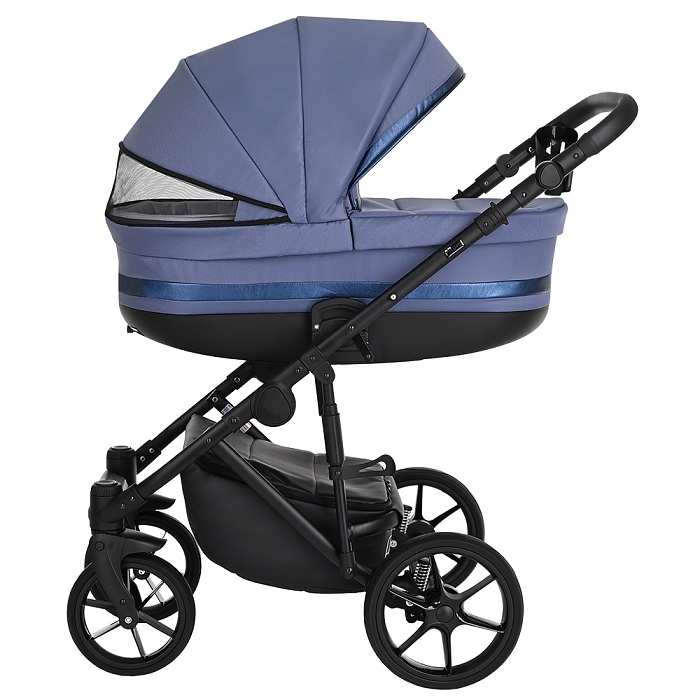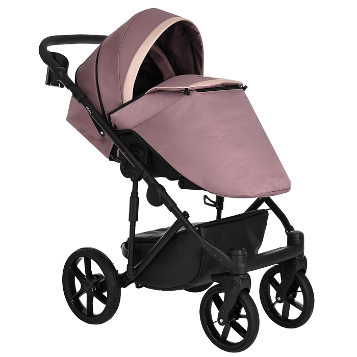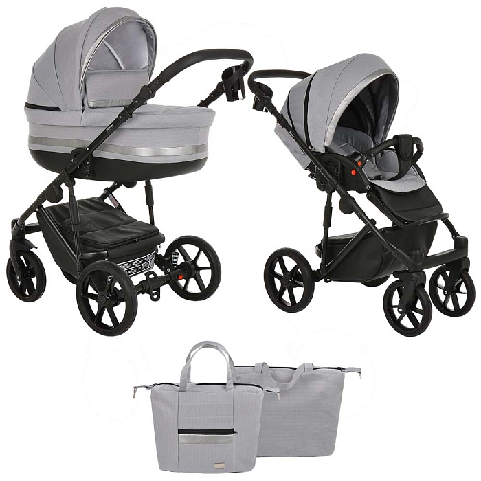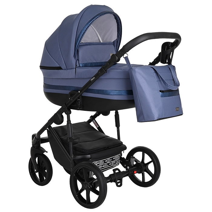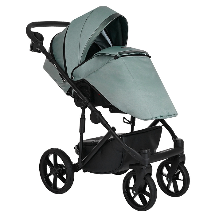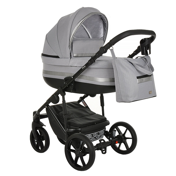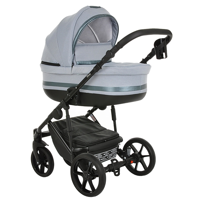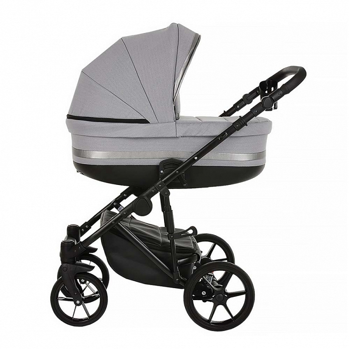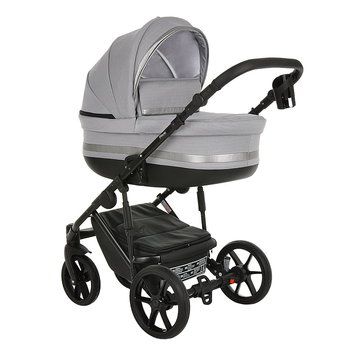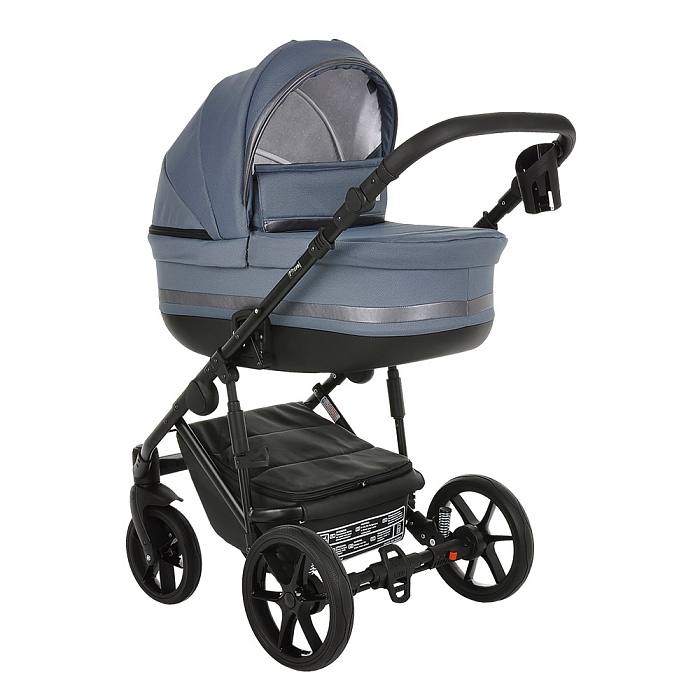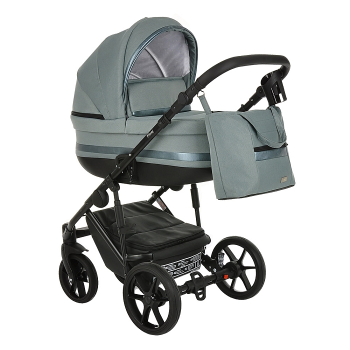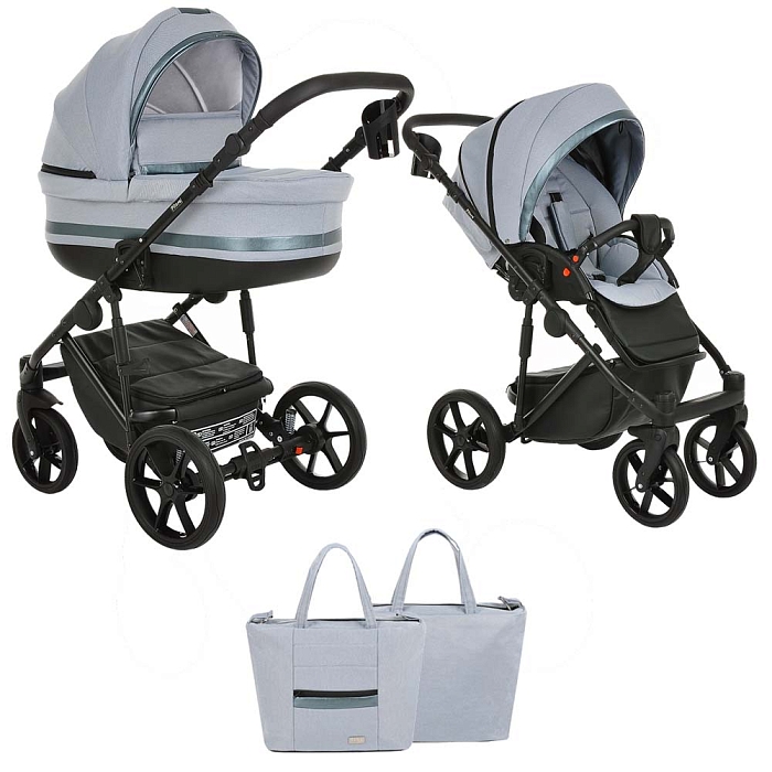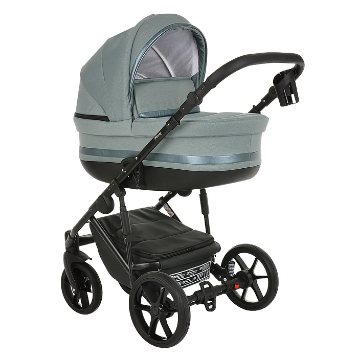- Базовый набор: рама с колёсами и корзиной, люлька с матрасом и тёплым чехлом на ножки, прогулочный блок с бампером и накидкой на ноги.
