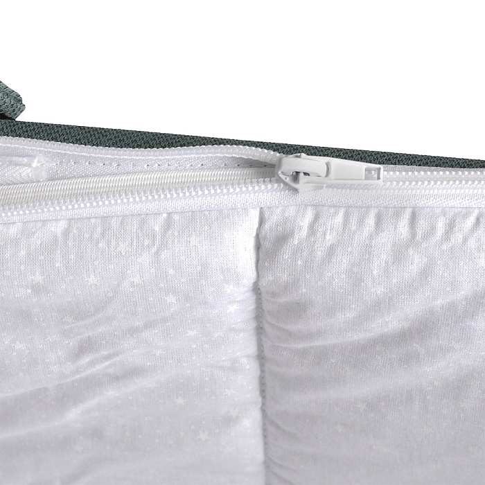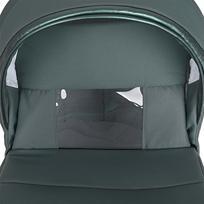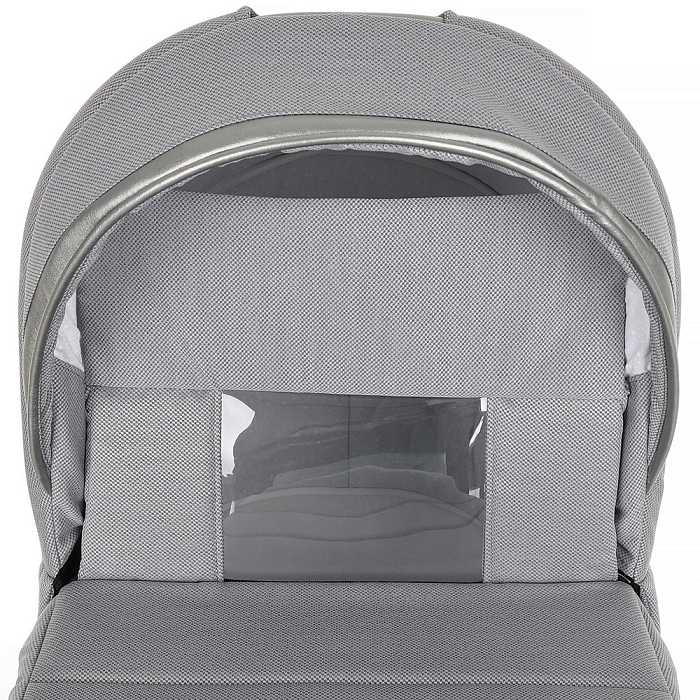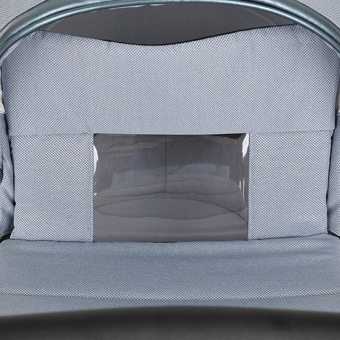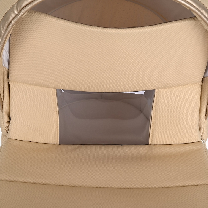Люлька для новорожденных имеет ровное пластиковое дно и ортопедический матрасик. Внутренняя обивка из натурального хлопка легко снимается для поддержания чистоты в ложе младенца. На дне спального блока находится вентиляционная решетка, которая обеспечивает приток свежего воздуха к малышу. Она регулируется с внешней стороны.