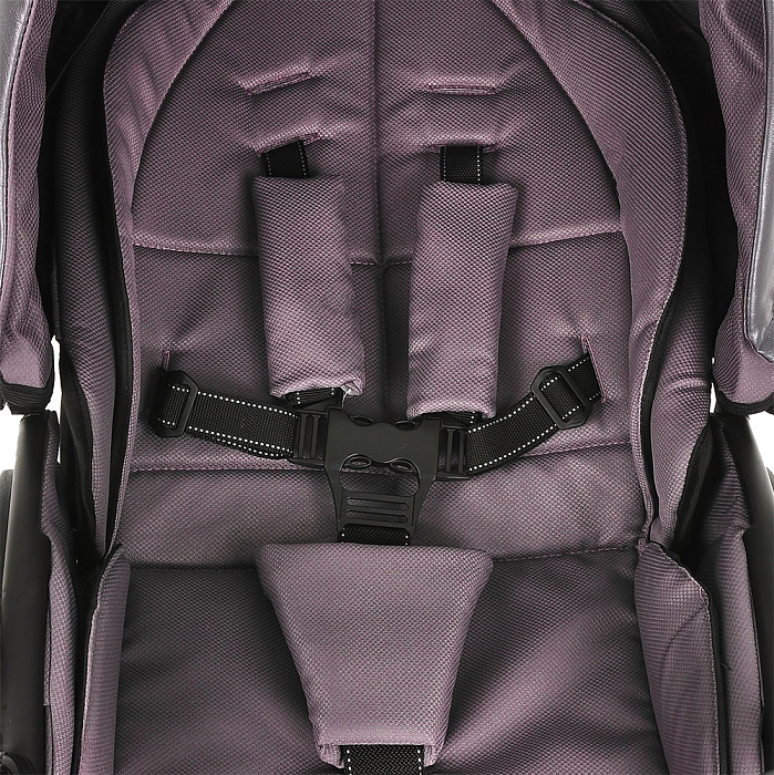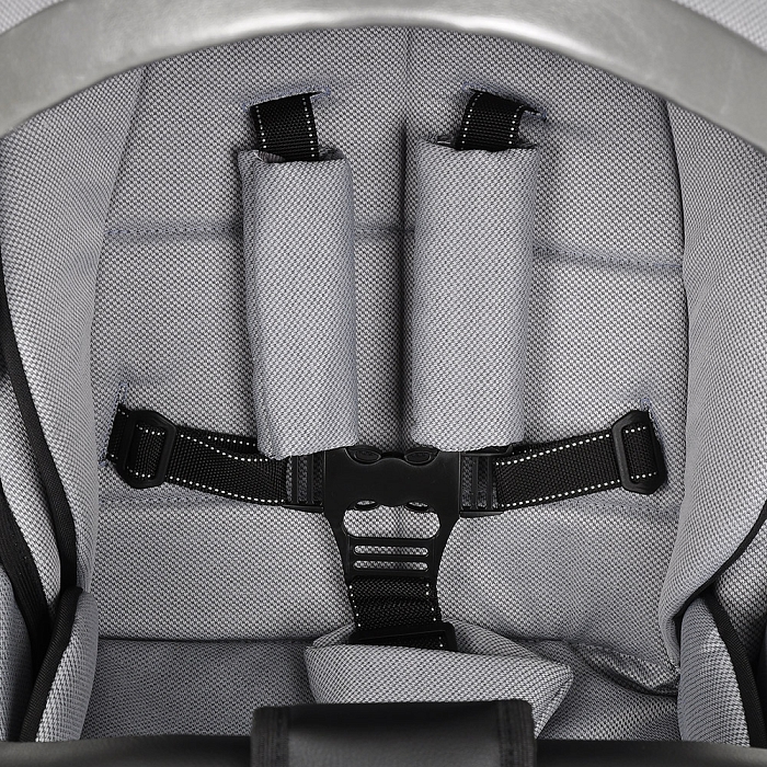 - Фиксация ребёнка: пятиточечные ремни, паховый ремень, съёмный поворотный бампер.