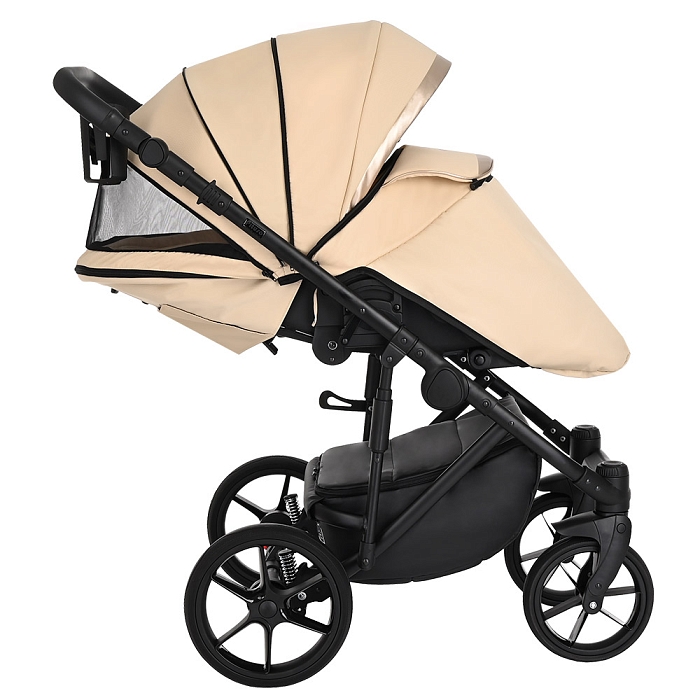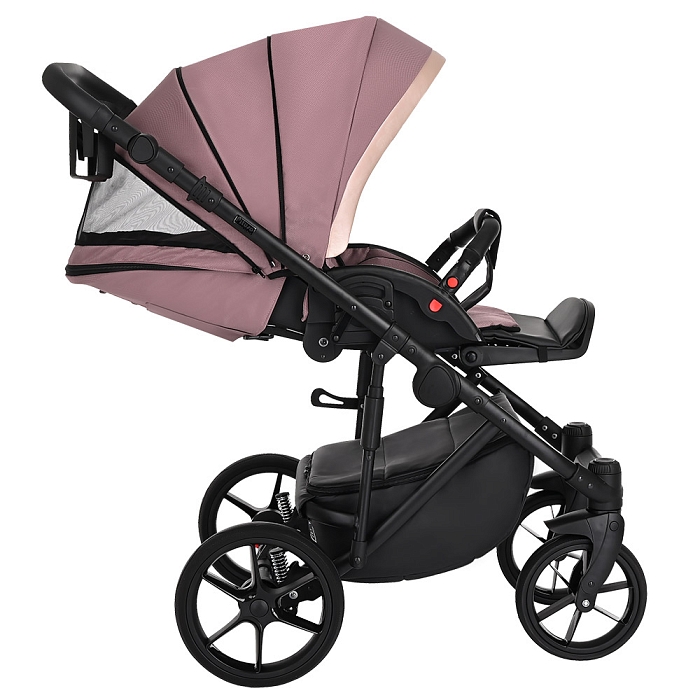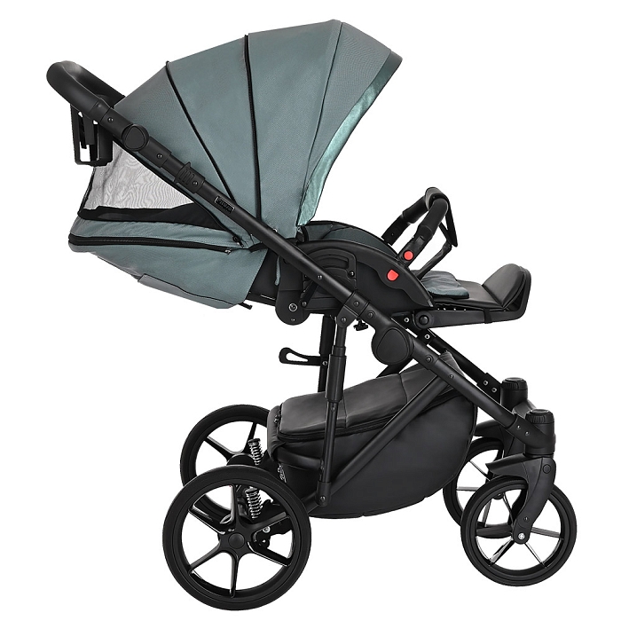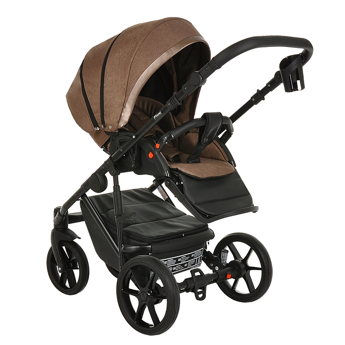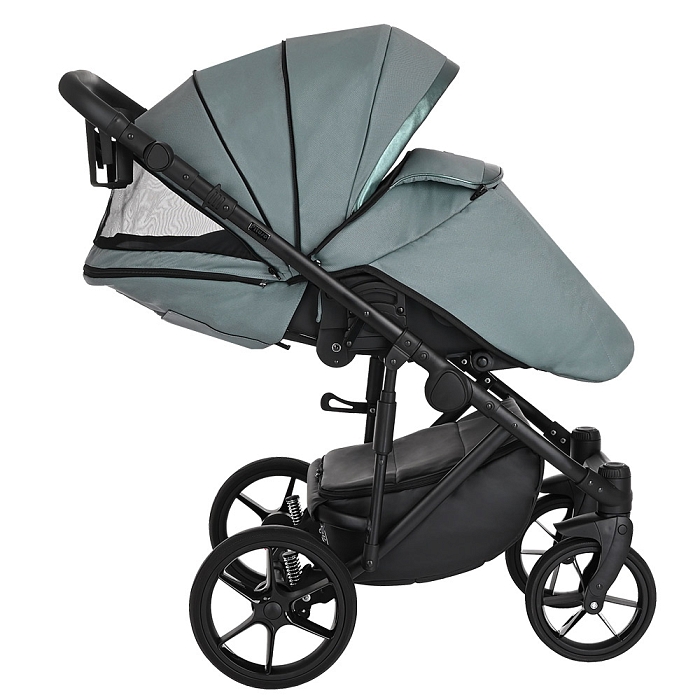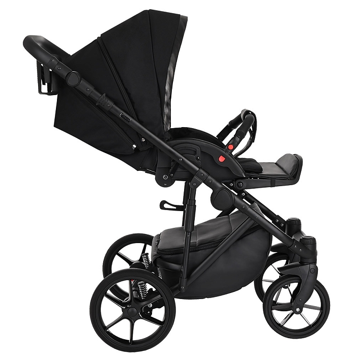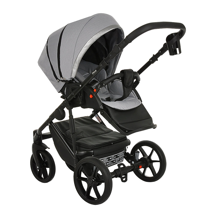 Благодаря увеличенному углу наклона спинки, сиденье в коляске рассчитано на использование с младенческого возраста ребенка. На самом нижнем уровне спинка сиденья опускается в полностью горизонтальное положение. Регулировка производится с помощью рычага, расположенного в задней части спинки коляски. Подножка имеет два положения, в верхнем удлиняет спальное место.