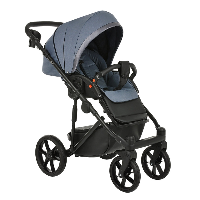- Регулировки: спинка и подножка с несколькими положениями (сидя, полулёжа, лёжа), складное шасси-книжка, регулировка высоты ручки.