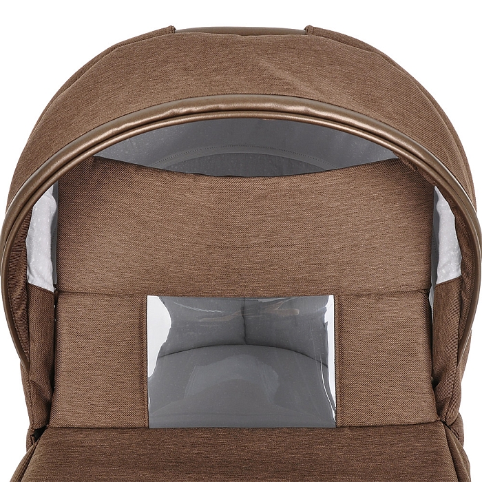 - Оснащена эргономичной ручкой, встроенной в капюшон и обтянутой экокожей. С ее помощью спящего малыша вы сможете переносить без проблем