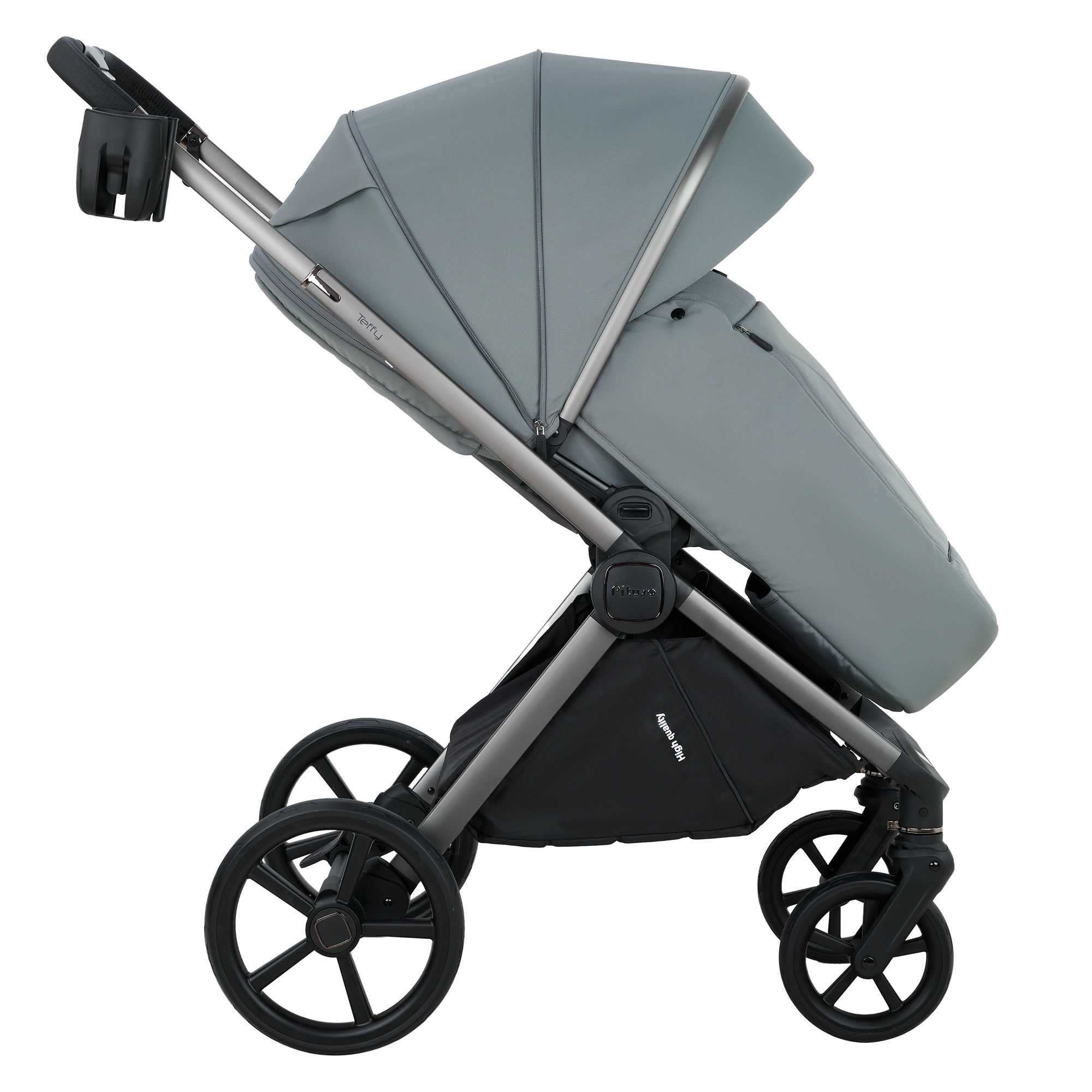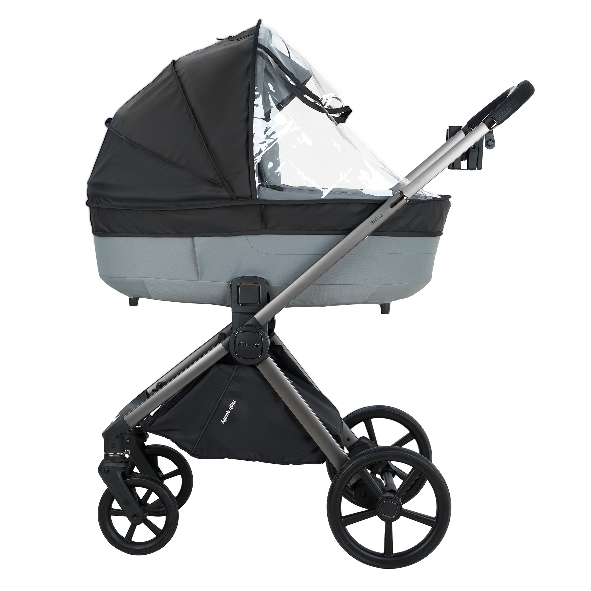 Шасси со съемными колесами; люлька с капюшоном, матрасиком AirZone 3D; прогулочный блок; москитная сетка; дождевик; накидка на ножки; бампер; рюкзак для мамы; подстаканник; корзина для покупок с жестким дном; адаптеры для люльки и автолюльки; вкладыш-утеплитель вентиляционного окошка.
