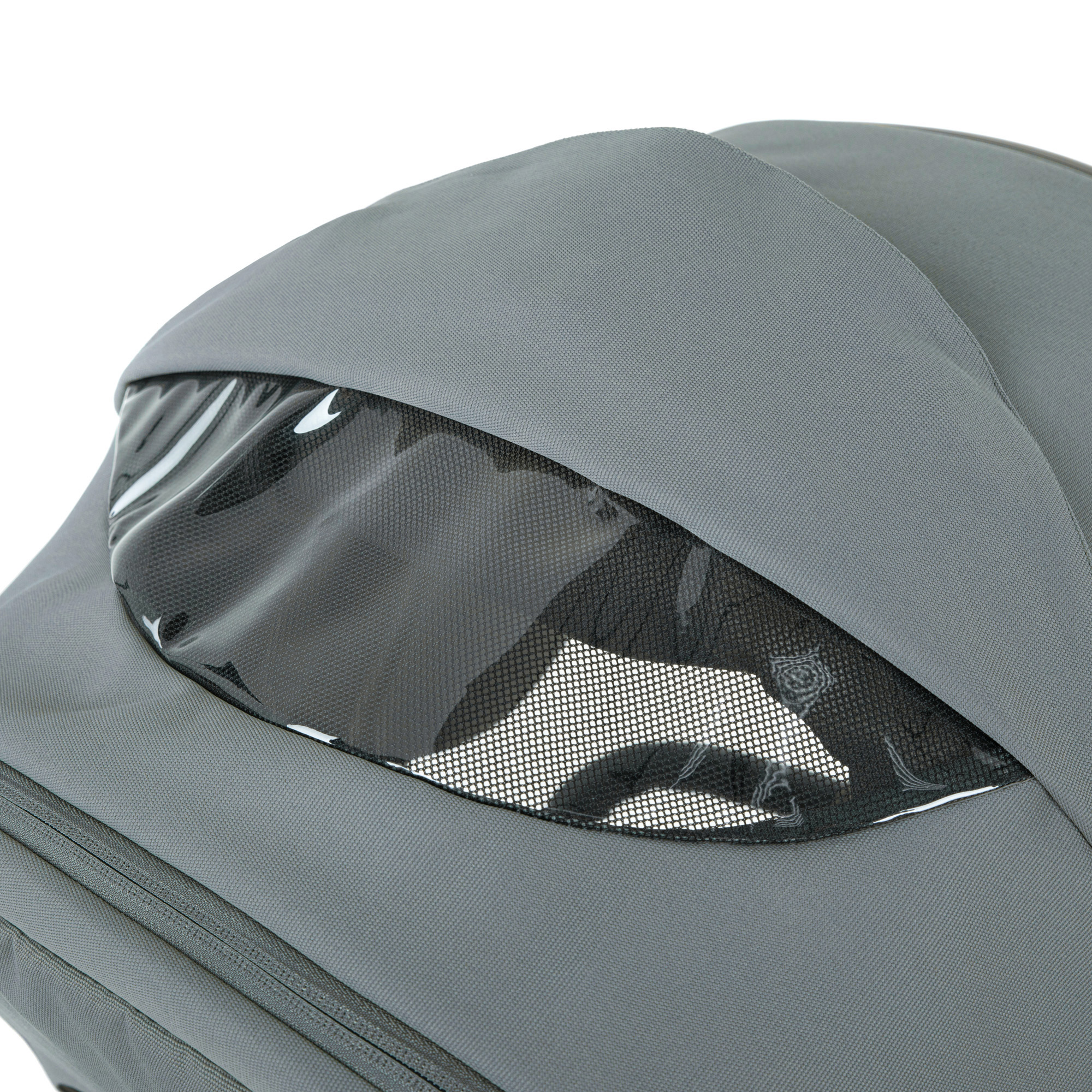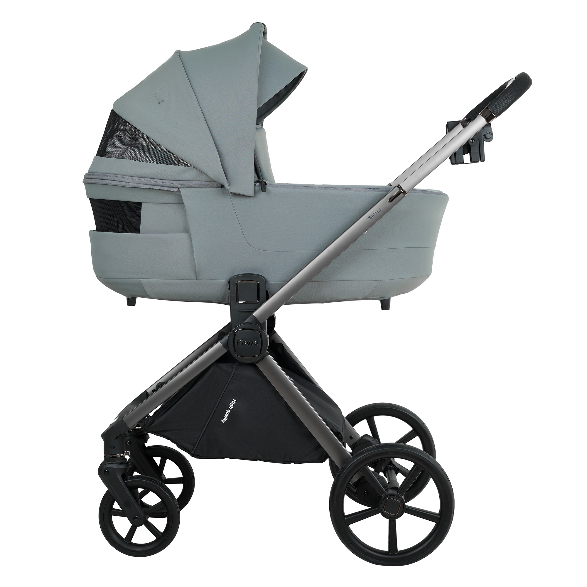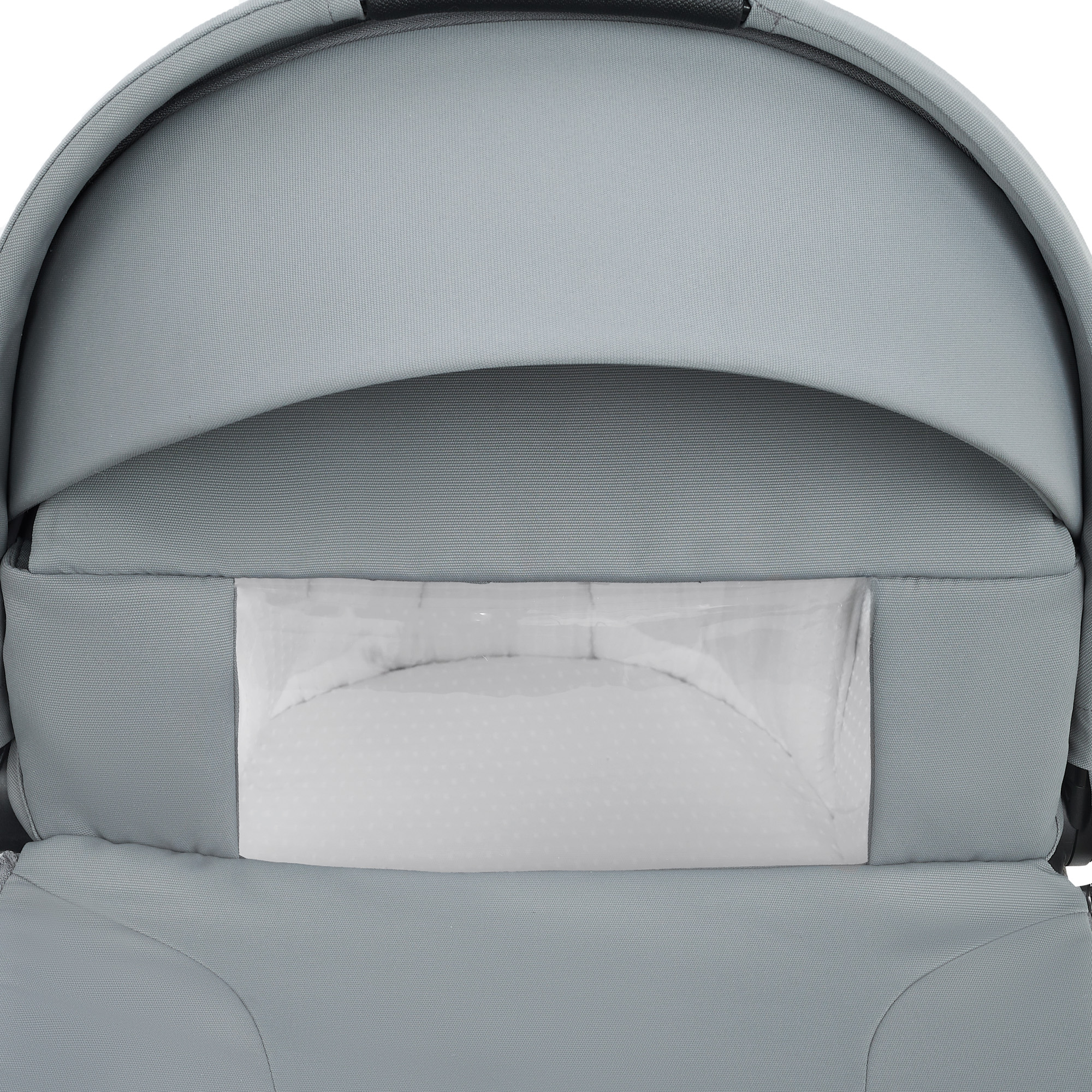 Инновационная люлька из 100% перерабатываемого материала EPP (как в автокреслах и шлемах) весит всего 4,7 кг (78x39x20 см) и поддерживает идеальный микроклимат. Он сохраняет тепло зимой и прохладу летом, обеспечивая комфорт в течение всего года. Микроклимат люльки регулируется разными положением клапана, закрывающего сетчатое окошко, что позволяет регулировать интенсивность поступления воздуха. Клапан оборудован магнитными фиксаторами положений. Многослойный водостойкий текстиль с SPF 50, капор с ручкой переноски, съемным козырьком, расширяемой секцией, двумя климат-панелями под молнией. Зимний вкладыш-утеплитель, внутренняя хлопковая отделка, защитный бортик. Гипоаллергенный матрасик AirZone 3D содержит 80% воздуха, обладает антибактериальными свойствами, двусторонний, из ткани и 3D-сетки, высота до люльки всего 60 см.