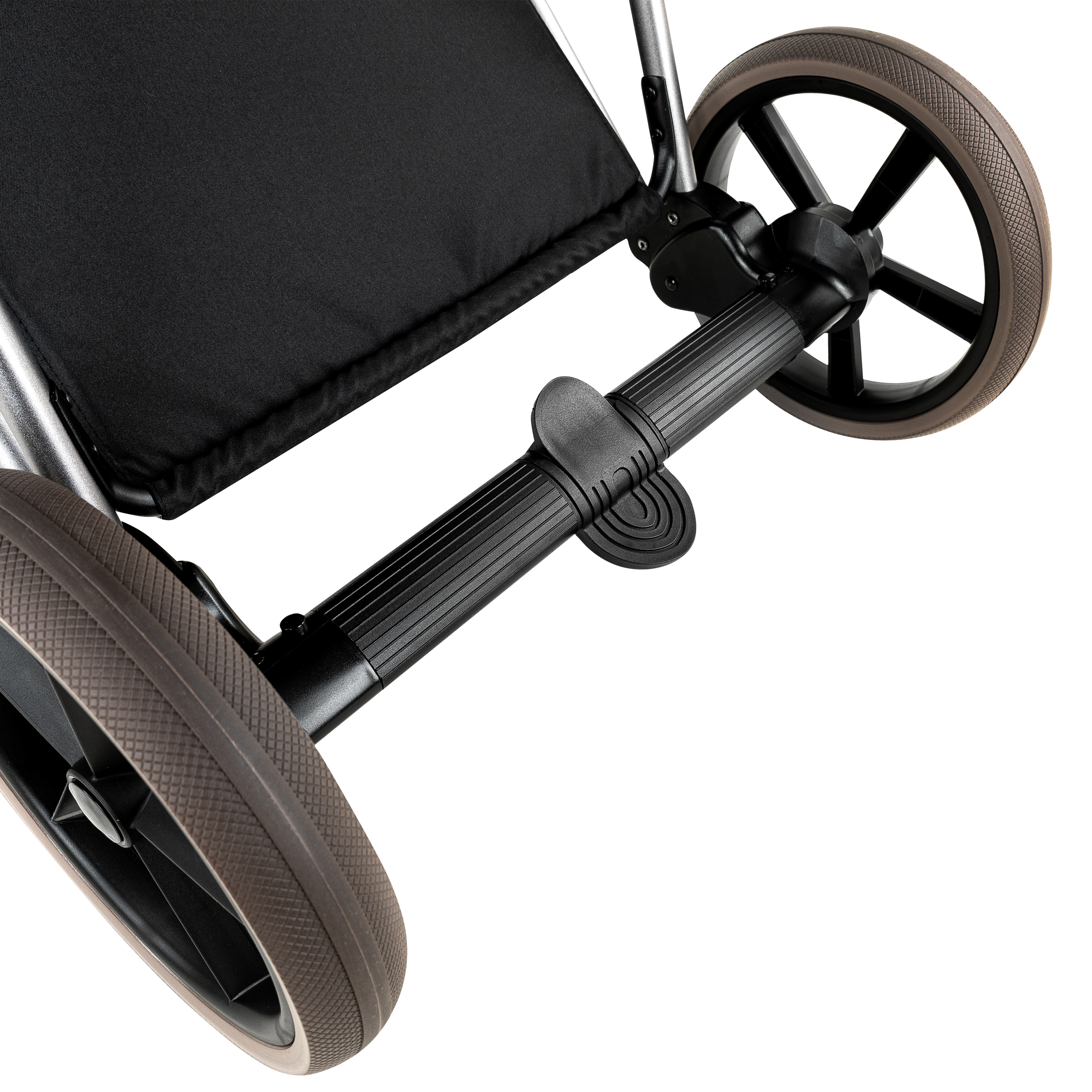 Колеса в коляске ненадувные из специального вспененного геля (гелевые). Такое колесо невозможно пробить, не требует подкачек, а ход его очень мягкий. Гелевое колесо хорошо зарекомендовало себя как в жару, так и в холод. В каждом колесе установлен двойной подшипник, что делает ход коляски беззвучным.