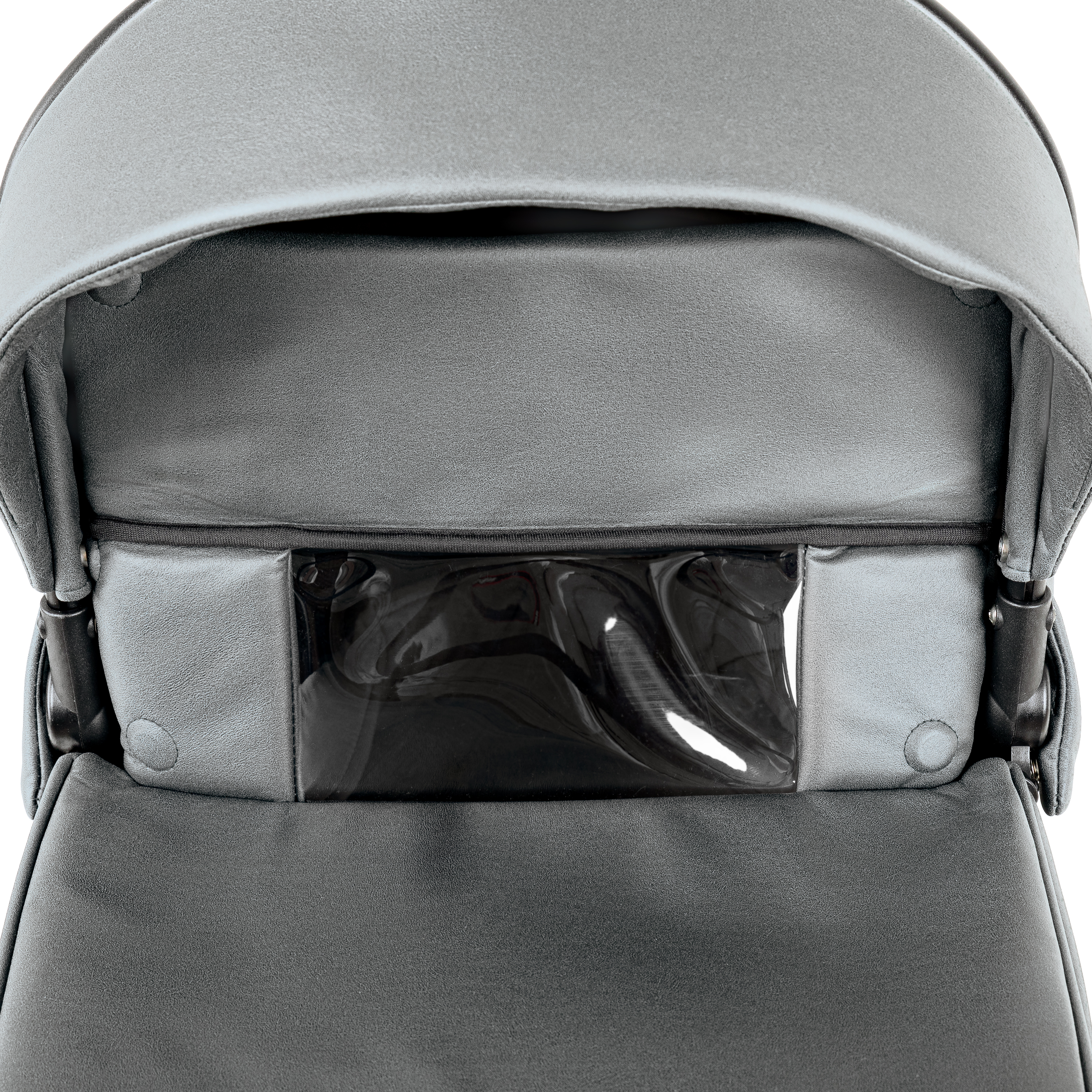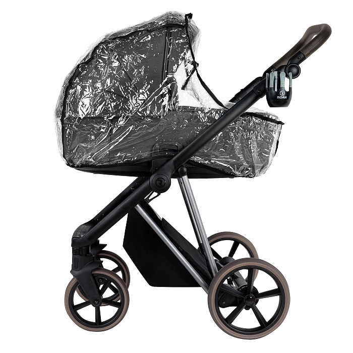 Чехол в люльке имеет отворот со смотровым окошком. Окошко выполнено из морозостойкого силикона. Чехол люльки крепится на магнитах к основанию люльки. Такой способ – это уникальная новая система крепления чехла от производителя колясок ROAN. Такой способ крепления позволяет моментально закрепить или снять чехол с люльки.