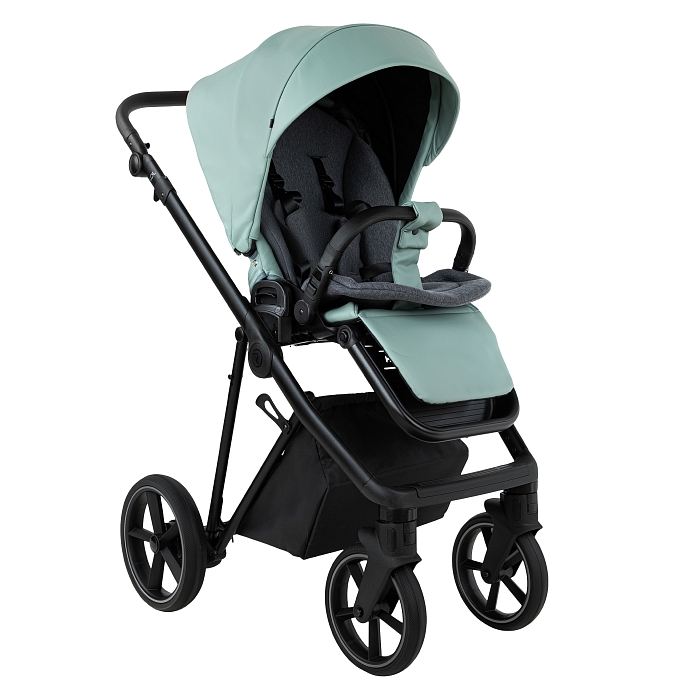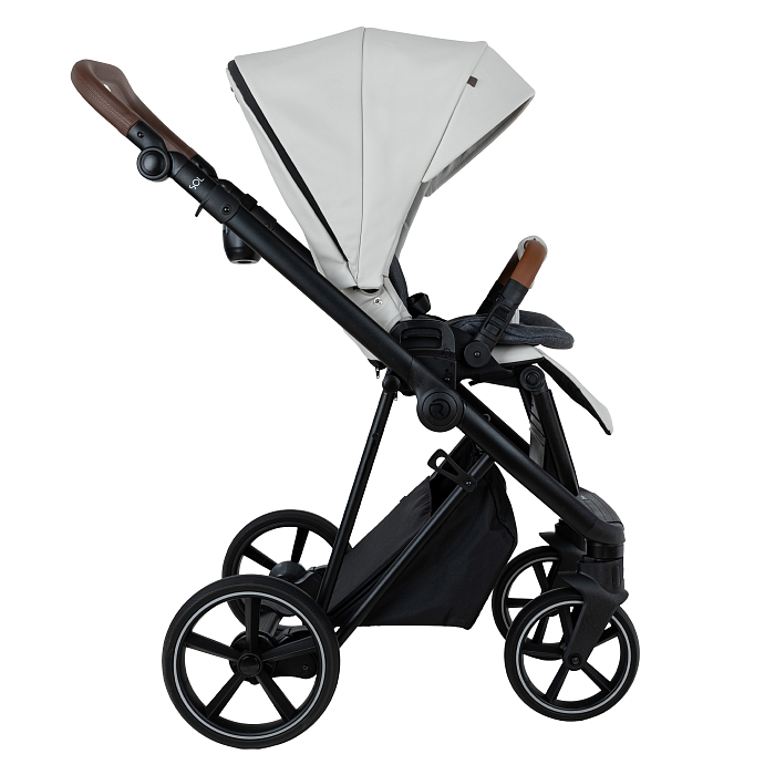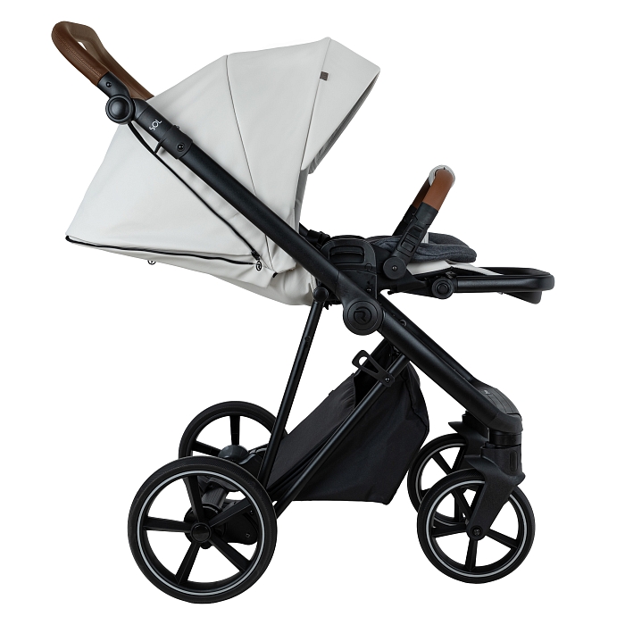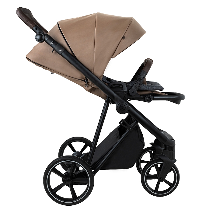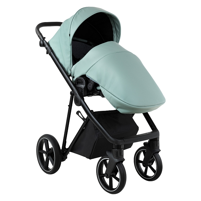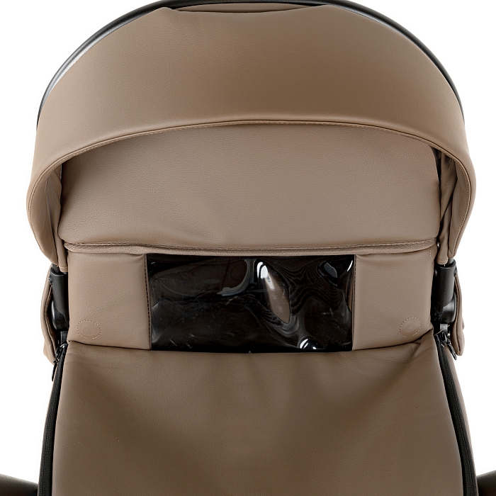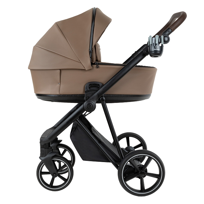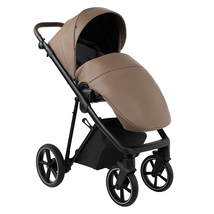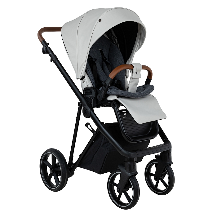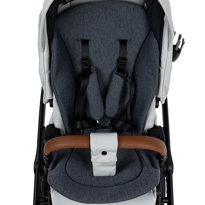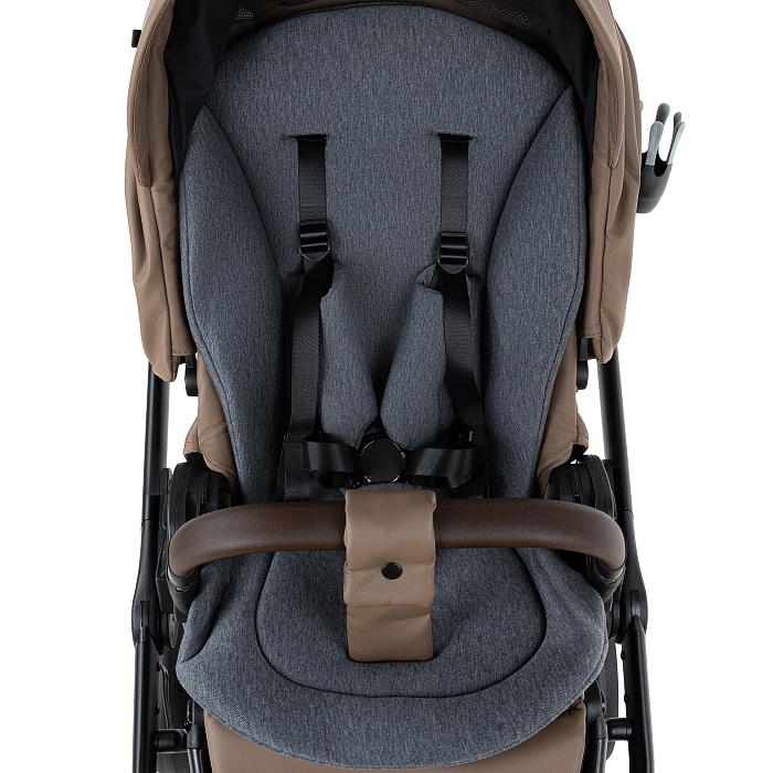 - Фактурная экокожа премиум‑класса на внешней отделке люльки и прогулочного блока.