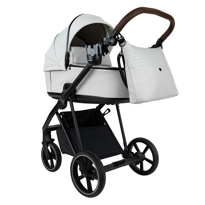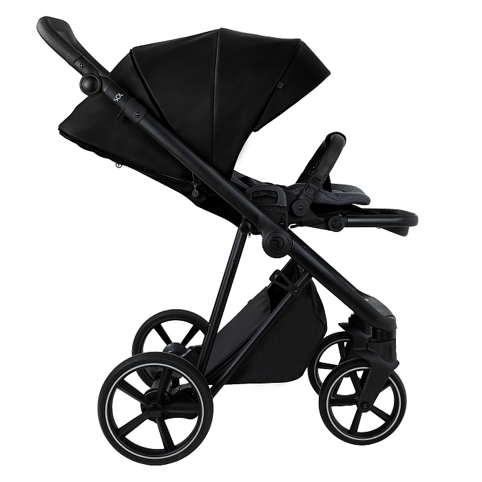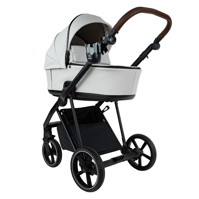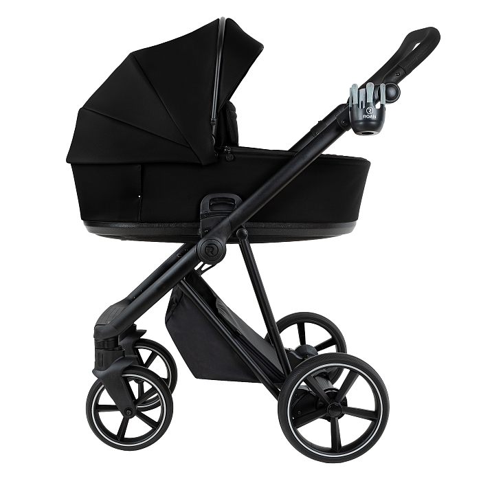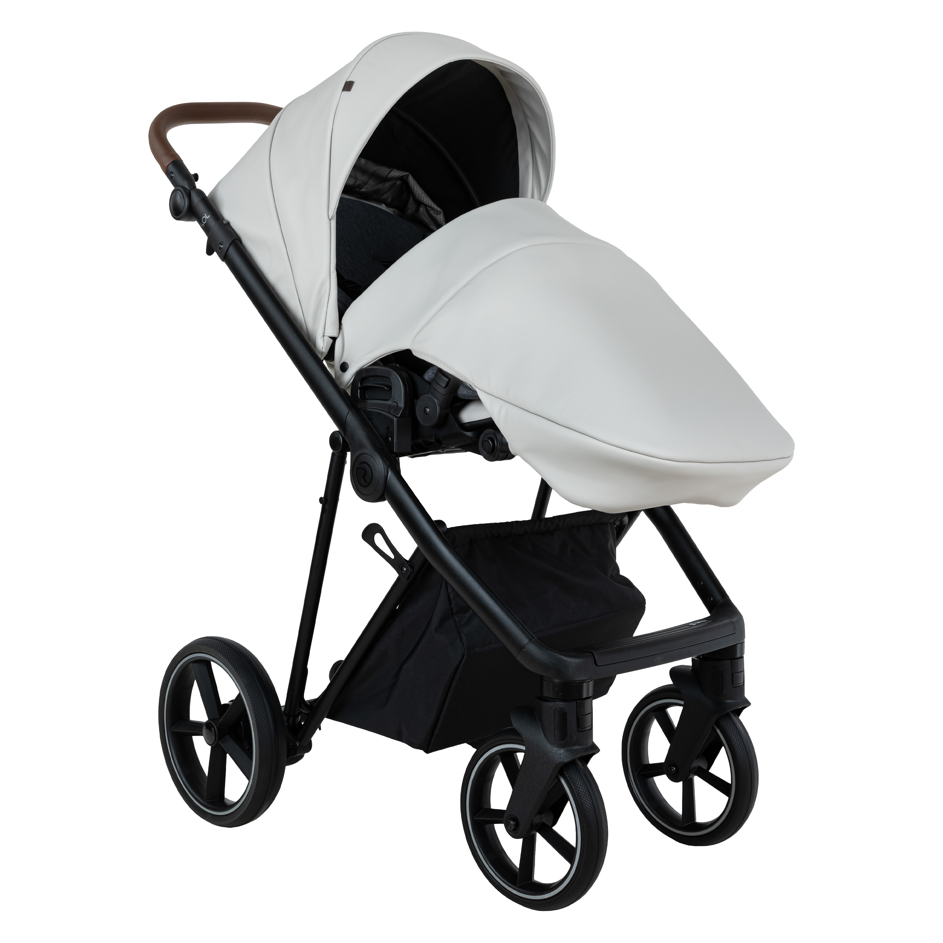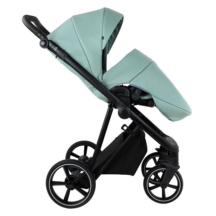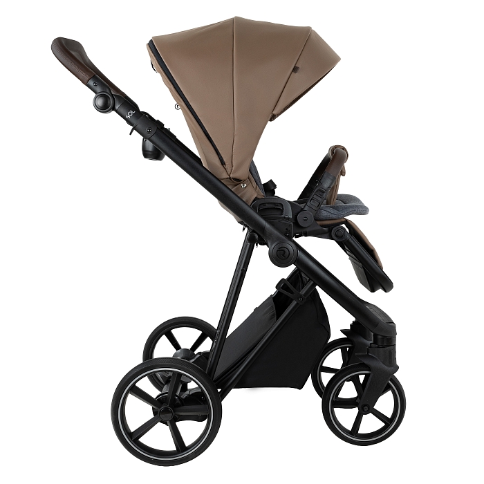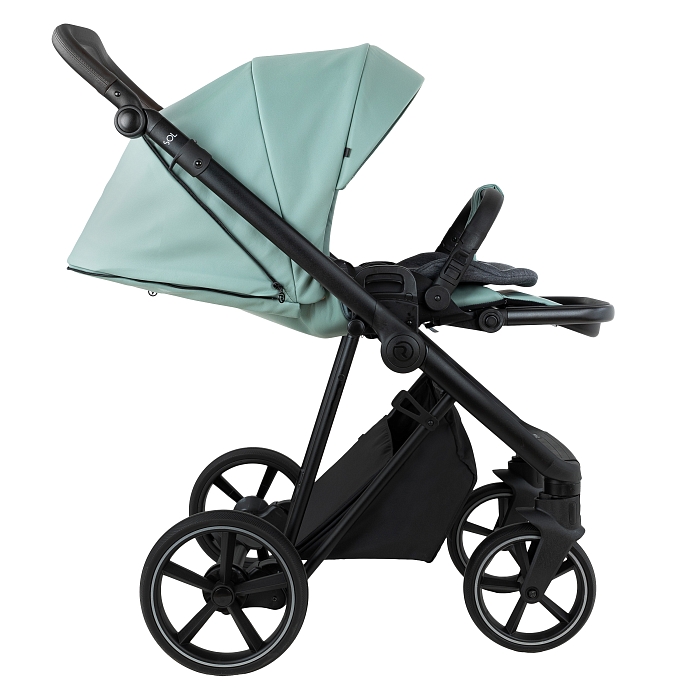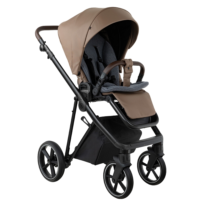- Фактурная экокожа премиум‑класса на внешней отделке люльки и прогулочного блока.