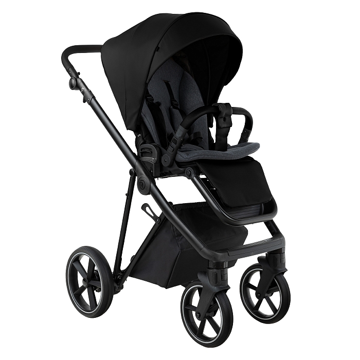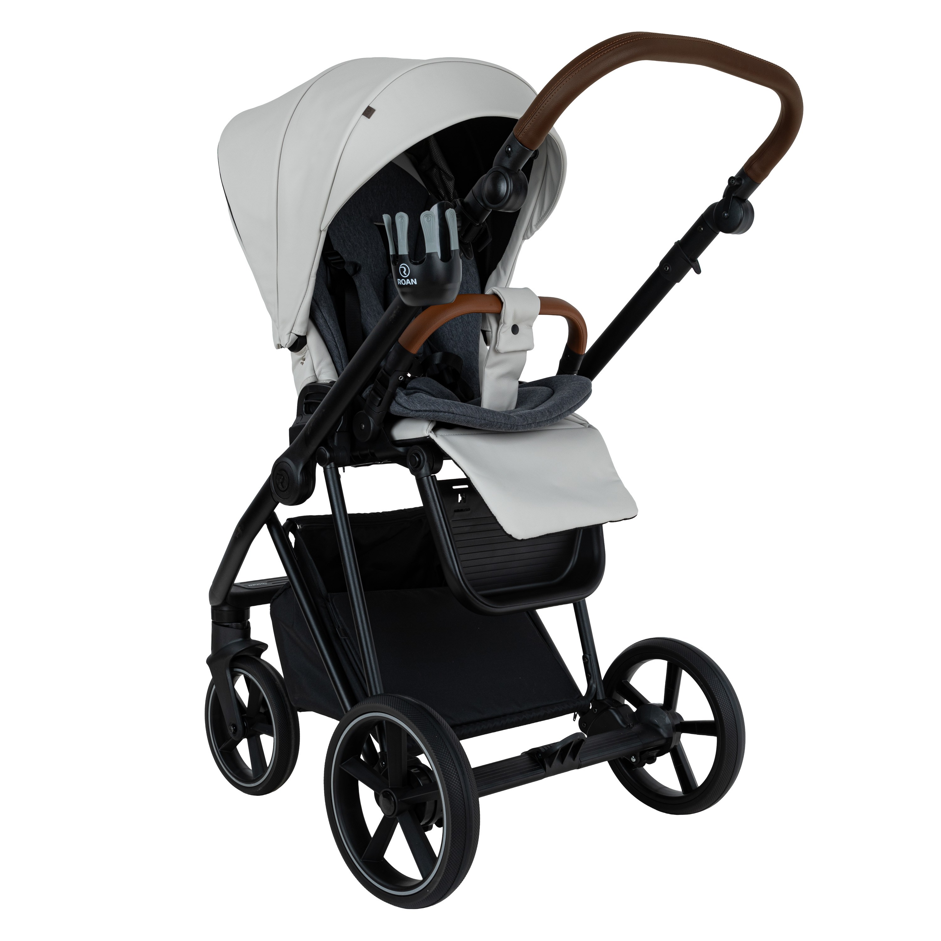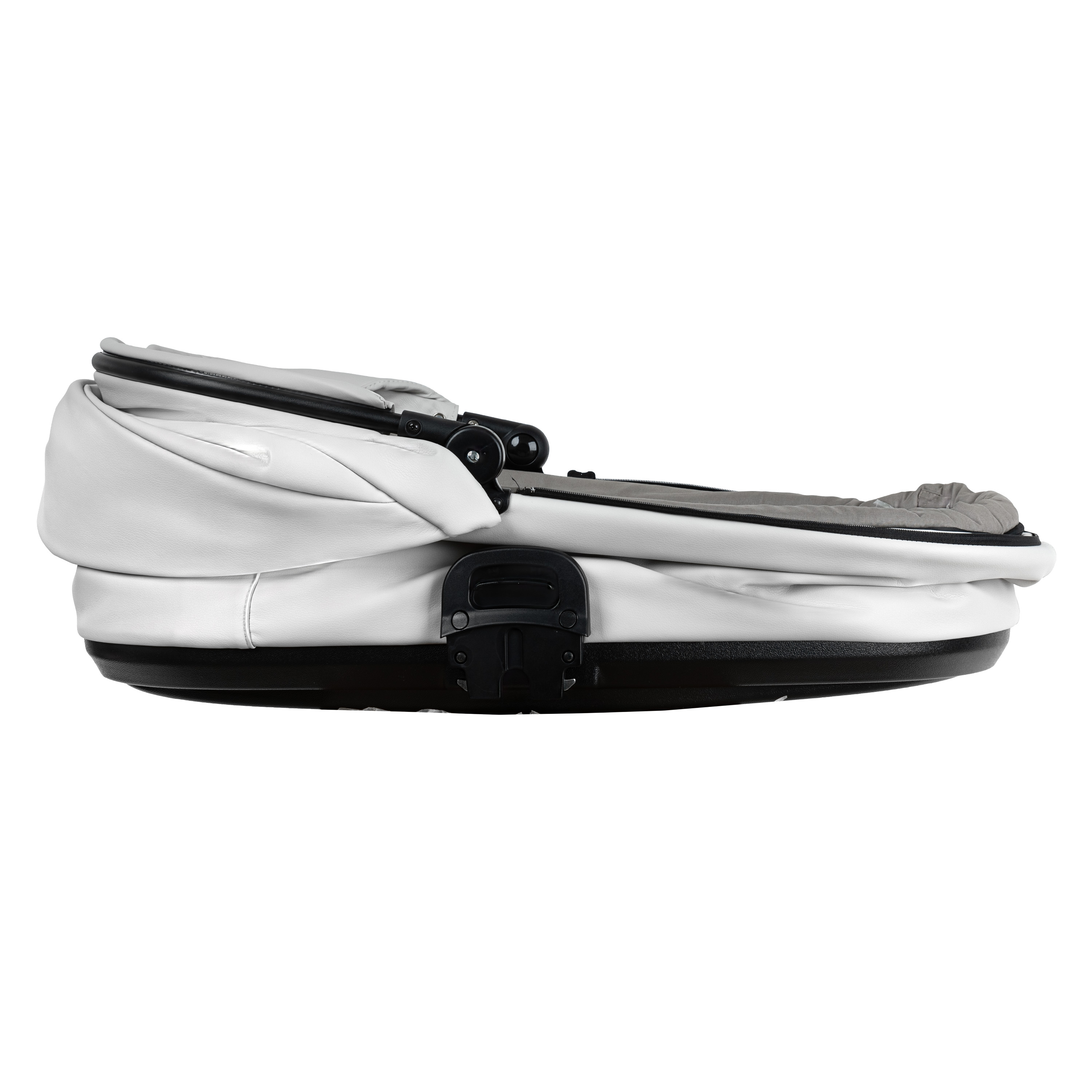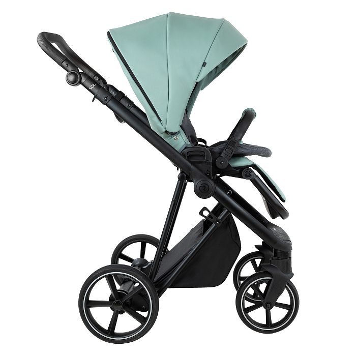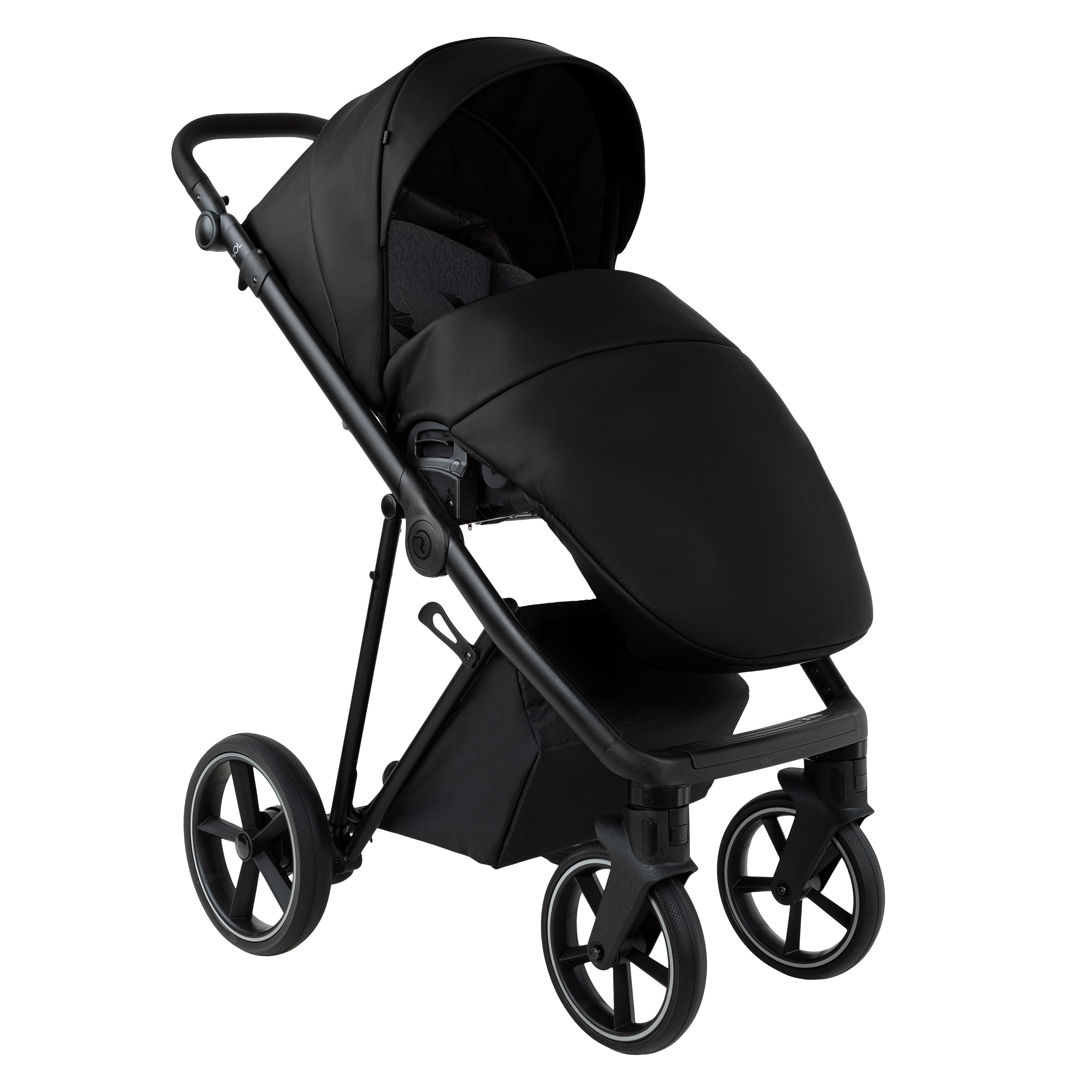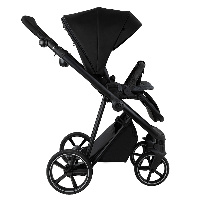 - Фактурная экокожа премиум‑класса на внешней отделке люльки и прогулочного блока.