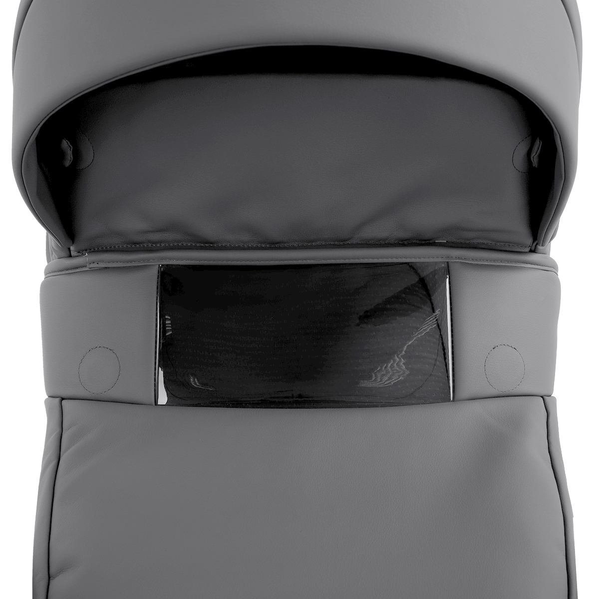 Люлька в коляске Tutis Nanni широкая и глубокая, создает приятный «обволакивающий» эффект для малыша. Он находится будто в коконе, уютном и теплом. Ортопедический дышащий матрасик, внутренние борта имеют чехлы из натуральной хлопковой ткани. Подголовник регулируется по высоте, есть панорамное окошко для мамы, накидка от ветра и бортик для малыша. Защита от ветра на накидке для люльки крепится на магнитах. Внешняя ткань водо- и грязеотталкивающая.