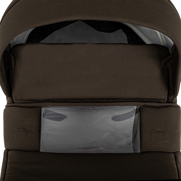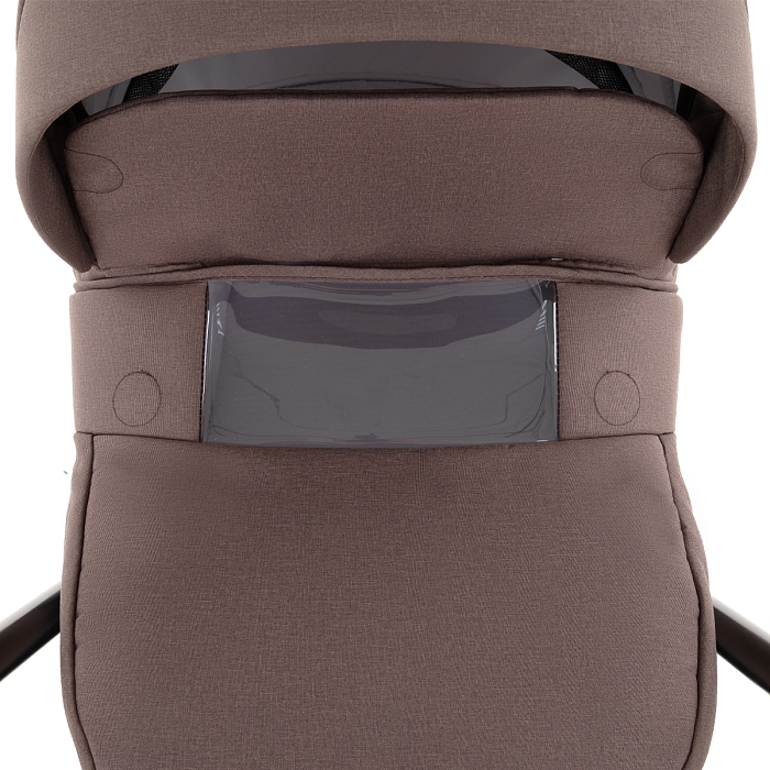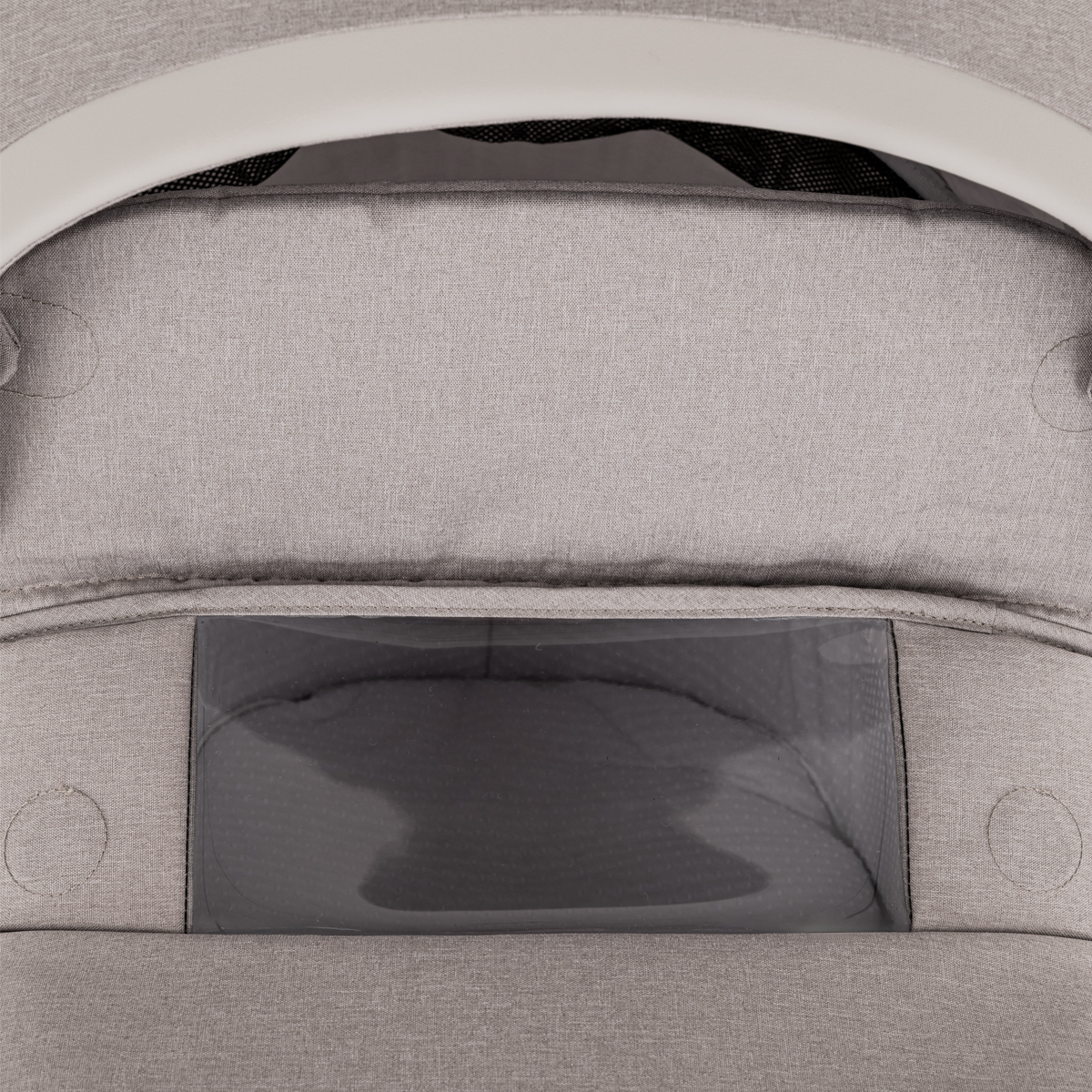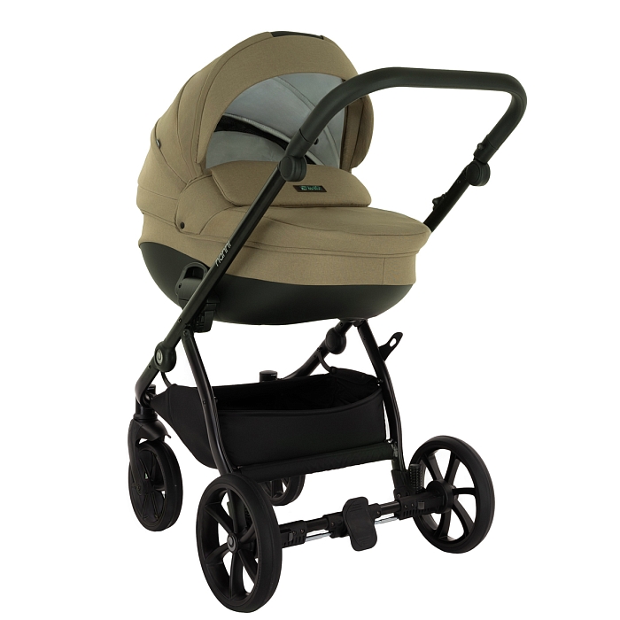 Люлька в коляске Tutis Nanni широкая и глубокая, создает приятный «обволакивающий» эффект для малыша. Он находится будто в коконе, уютном и теплом. Ортопедический дышащий матрасик, внутренние борта имеют чехлы из натуральной хлопковой ткани. Подголовник регулируется по высоте, есть панорамное окошко для мамы, накидка от ветра и бортик для малыша. Защита от ветра на накидке для люльки крепится на магнитах. Внешняя ткань водо- и грязеотталкивающая.