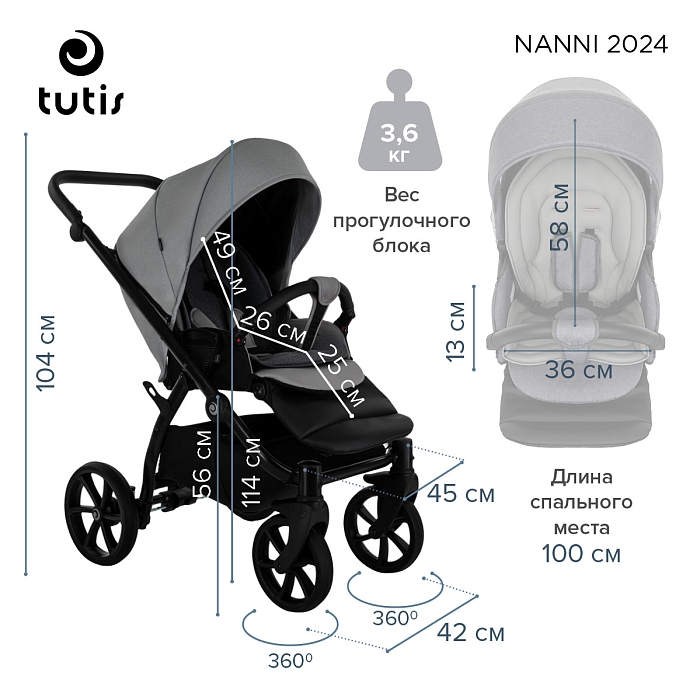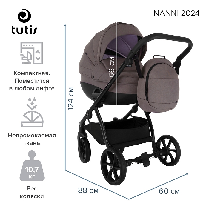 Покупая коляску Tutis Nanni 2 в 1, вы гарантируете своему ребенку долгие годы комфорта и уюта, а себе - удобство и надежность.