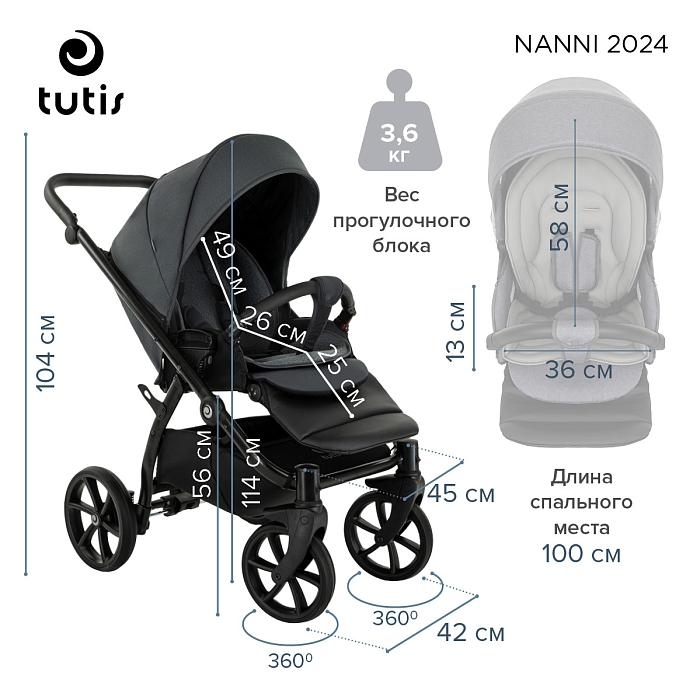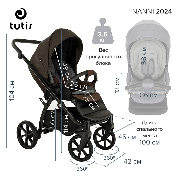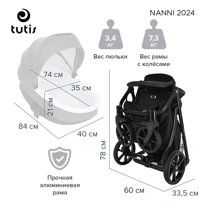 Покупая коляску Tutis Nanni 3 в 1, вы гарантируете своему ребенку долгие годы комфорта и уюта, а себе - удобство и надежность.
