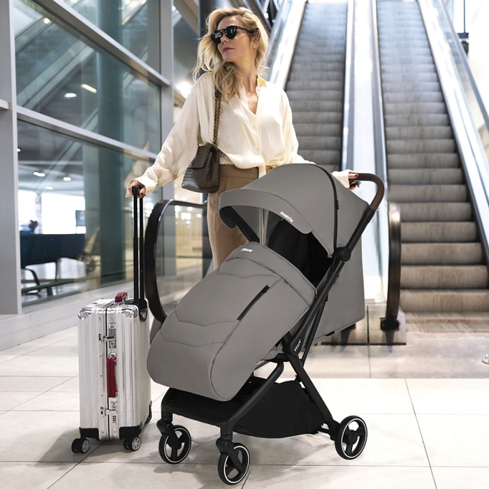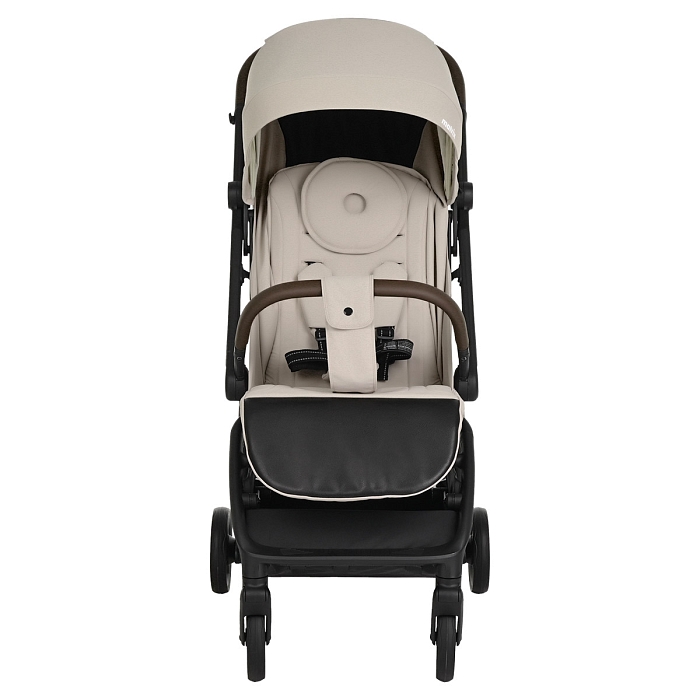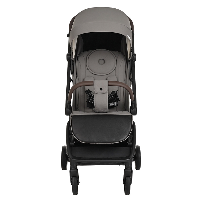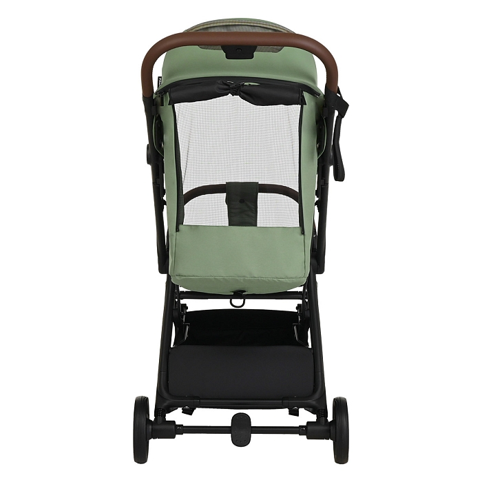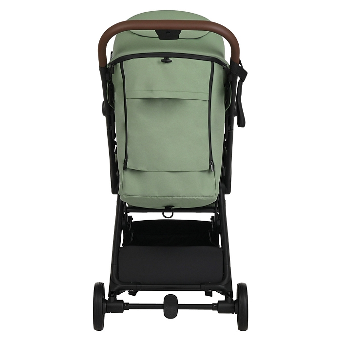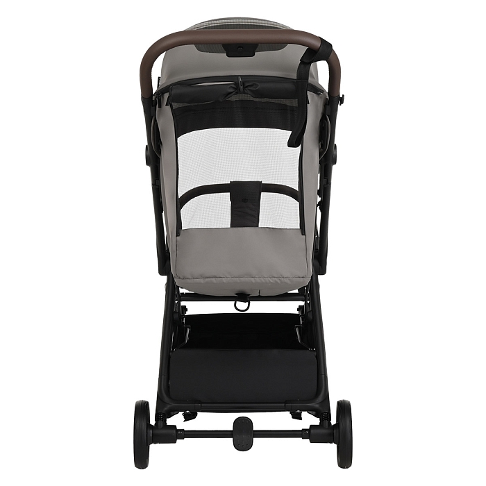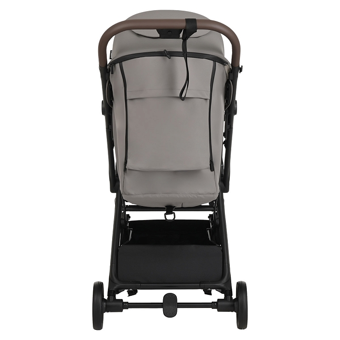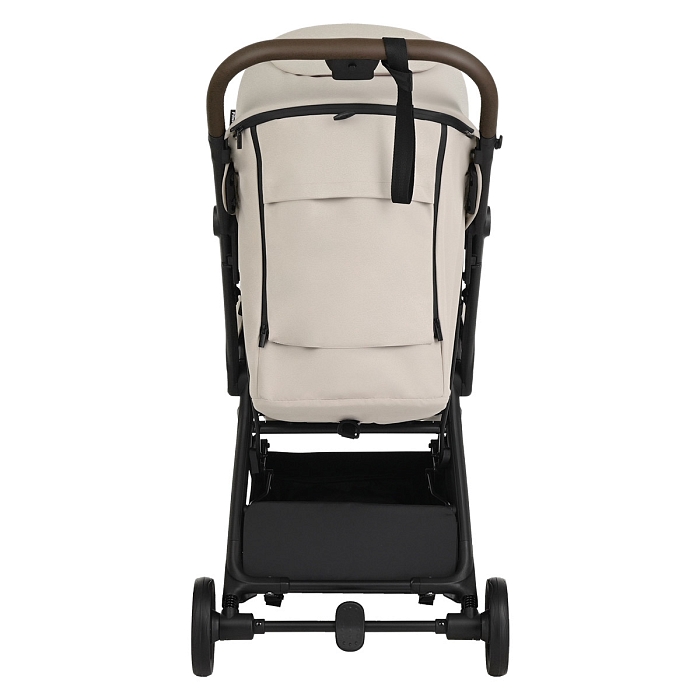 Удобная ручка из экокожи помогает легко управлять коляской и участвует в механизме складывания – достаточно нажать кнопку, чтобы активировать систему сложения. Открытая корзина для покупок обеспечивает дополнительное место для повседневных вещей и детских принадлежностей.