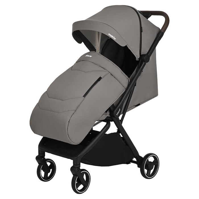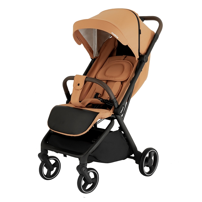 Коляска оснащена механизмом компактного складывания одной рукой. Для складывания достаточно нажать кнопку – система автоматического сложения сложит шасси до щелчка. В сложенном виде Matrix имеет размеры примерно 57×51×23 см и легко помещается в багажник автомобиля или хранится дома, занимая минимум места. Небольшой вес 7,9 кг делает переноску удобной и для мам, и для пап.