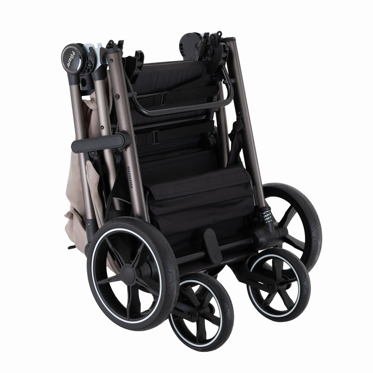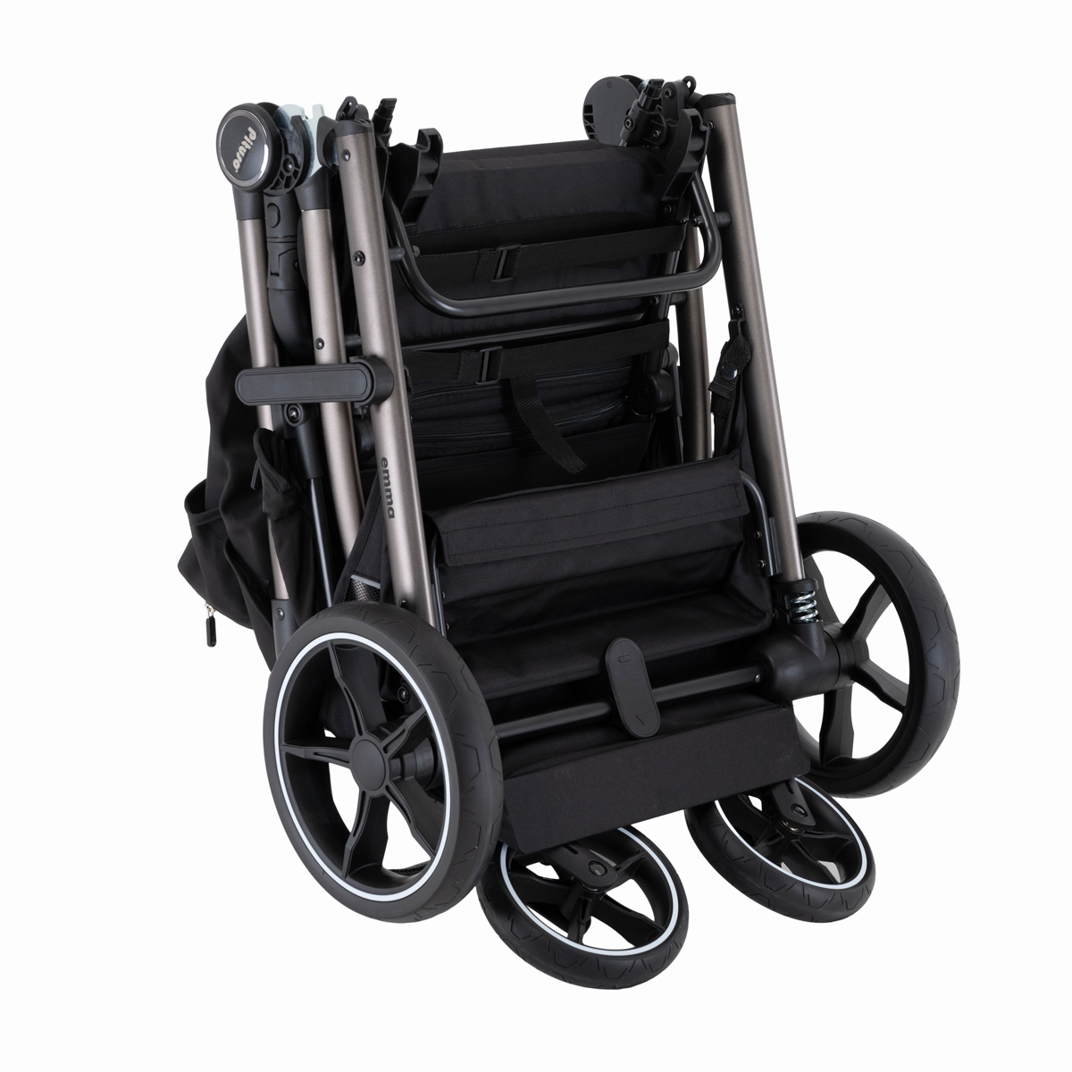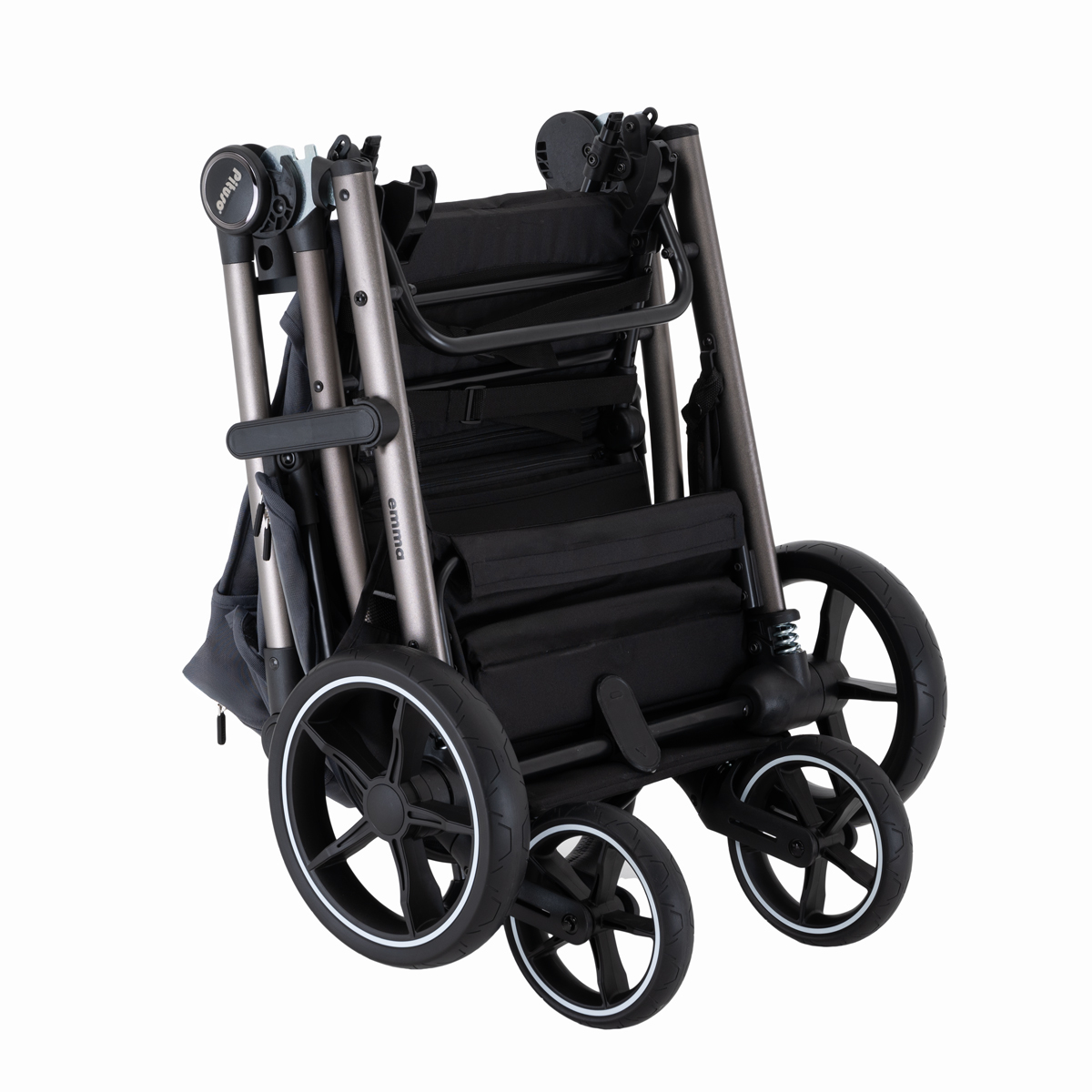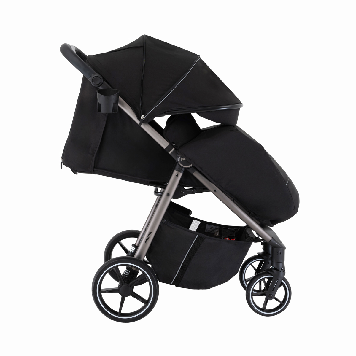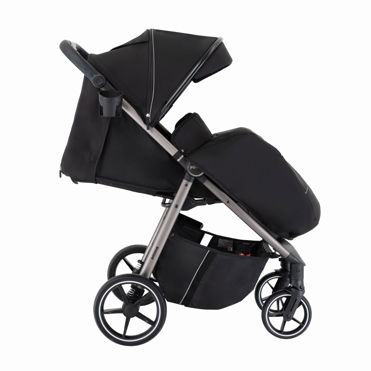 Во всех колёсах Pituso Emma предусмотрена амортизация, за счёт чего коляска мягче проходит неровности и бордюры. Большие PU‑колёса на подшипниках улучшают плавность хода, а тормозная система One ClickTM позволяет одним нажатием надёжно зафиксировать коляску.