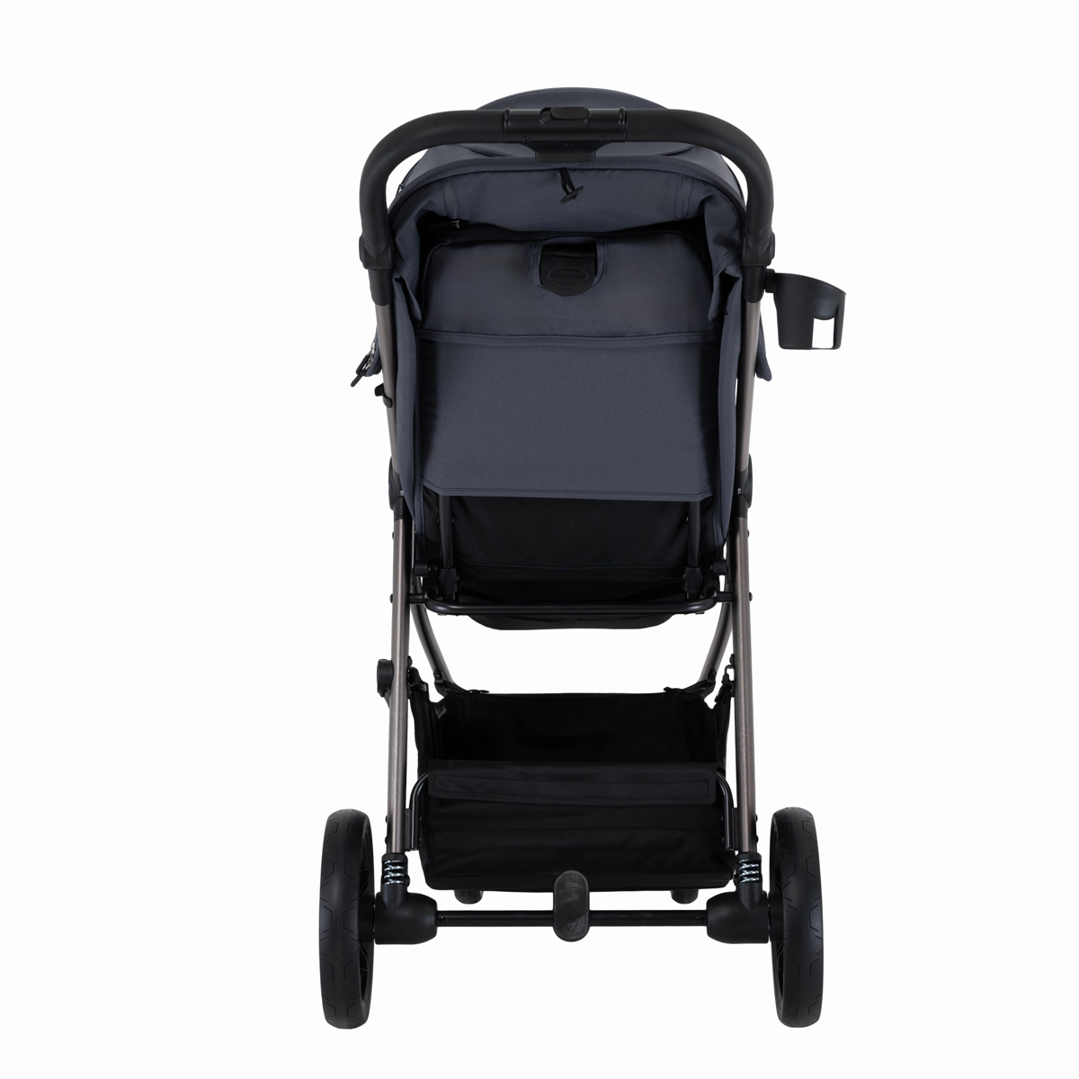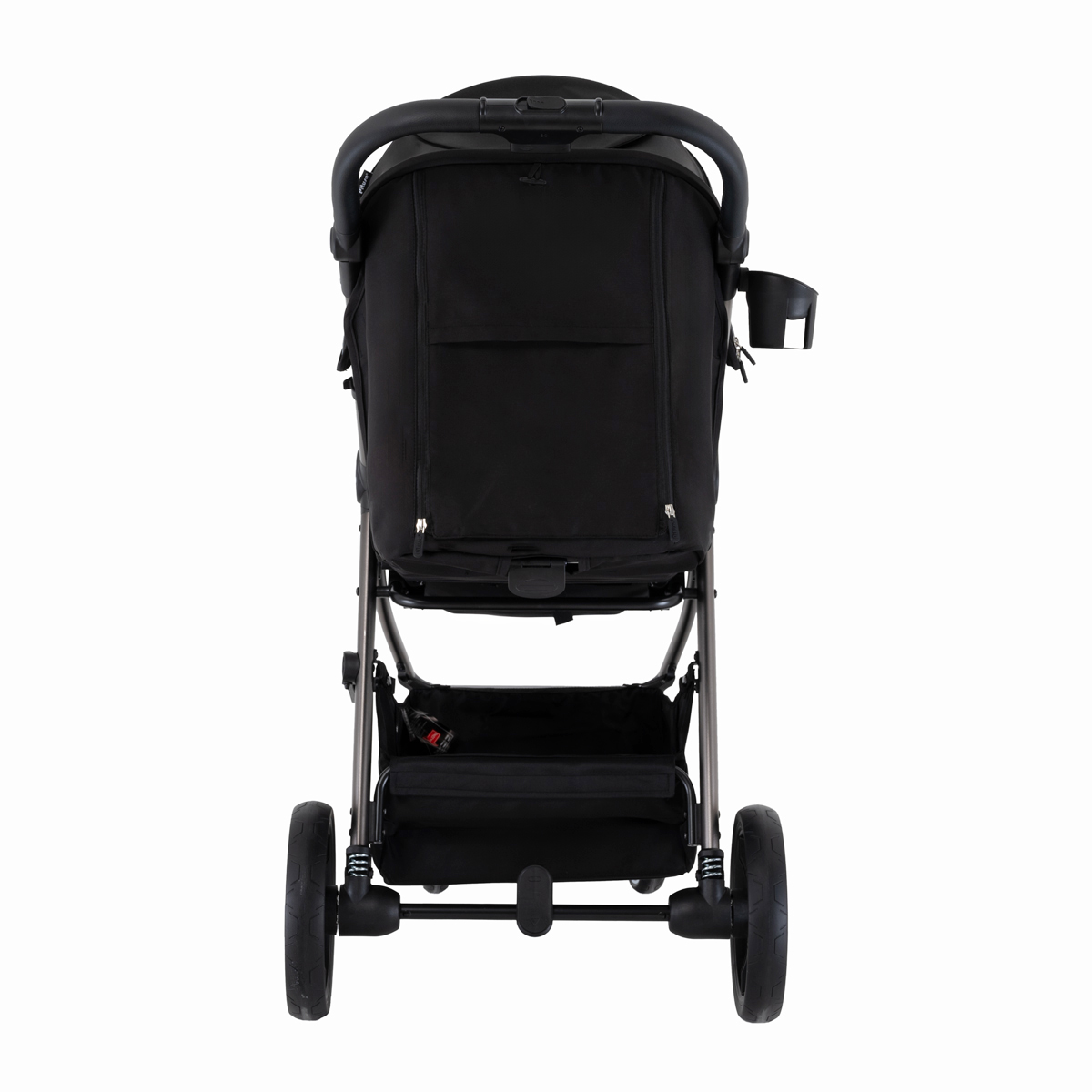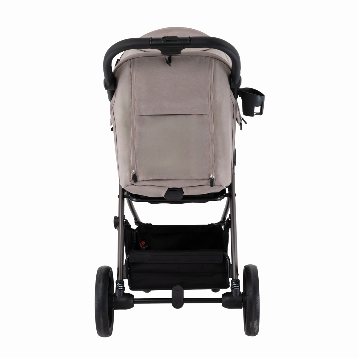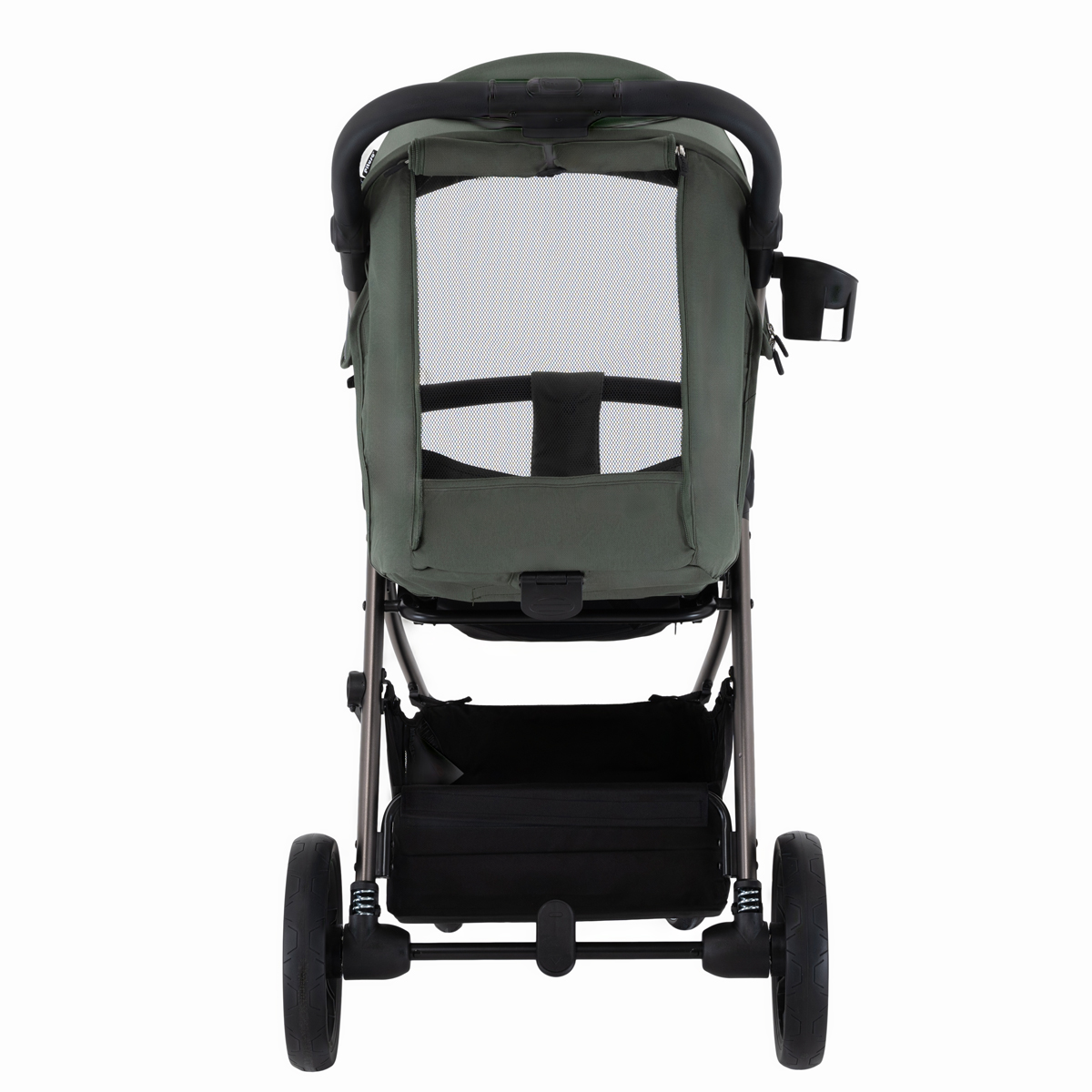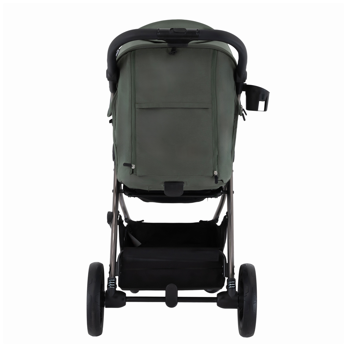 Коляска оснащена большими колёсами: передние диаметром 17 см и задние 24 см, все колёса выполнены из PU‑материала и установлены на подшипниках. Такой комплект обеспечивает мягкий ход, маневренность, хорошее сцепление и уверенную проходимость по городским тротуарам, плитке и утоптанному снегу.