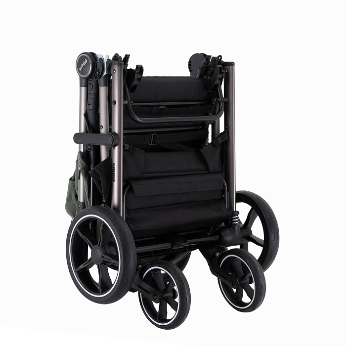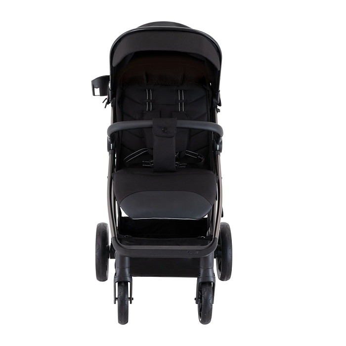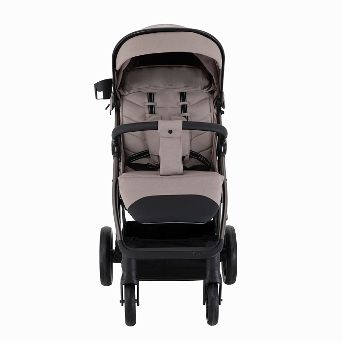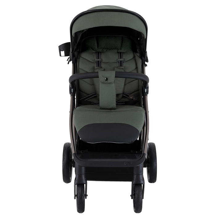Амортизация на всех четырёх колёсах смягчает вибрацию и делает ход более плавным, что особенно заметно на неровном покрытии и в зимний период. Тормозная система One ClickTM позволяет быстро и надёжно зафиксировать коляску нажатием педали.