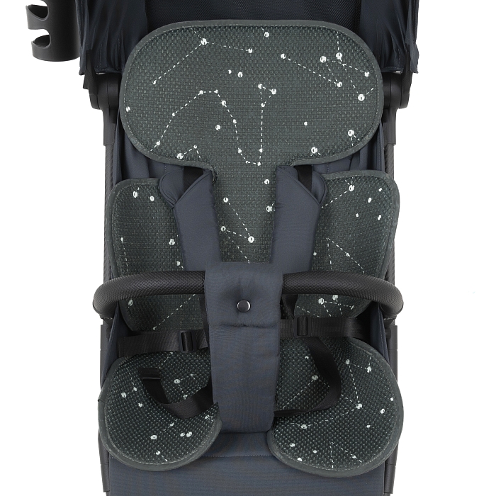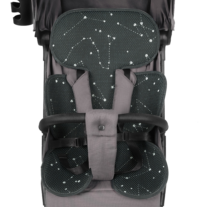 Рама- Carbon, колеса PU, прогулочный блок, бампер, мягкий вкладыш, чехол на ножки, подстаканник, сумка для переноски, корзина, страховочный ремешок.