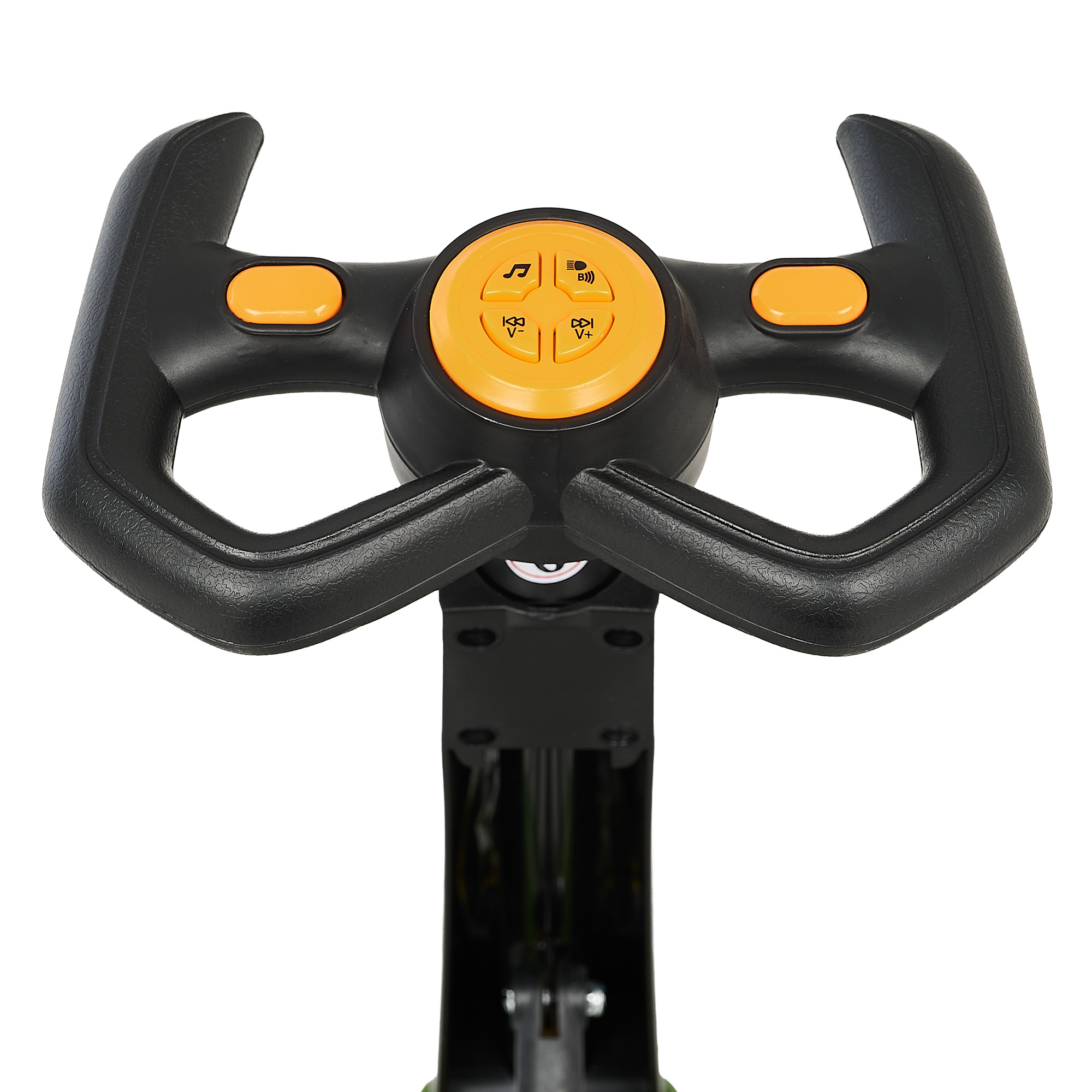 Пульт управления позволяет двигать картинг вперёд и назад, а также блокировать движение. Это даёт взрослым возможность контролировать катание ребёнка, при необходимости остановить транспорт или ограничить самостоятельное управление.