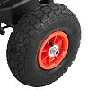 Пневматические колёса диаметром 24 см обеспечивают более мягкий ход, лучше цепляются за поверхность и комфортнее ощущаются на неровностях, чем жесткие пластиковые колеса.