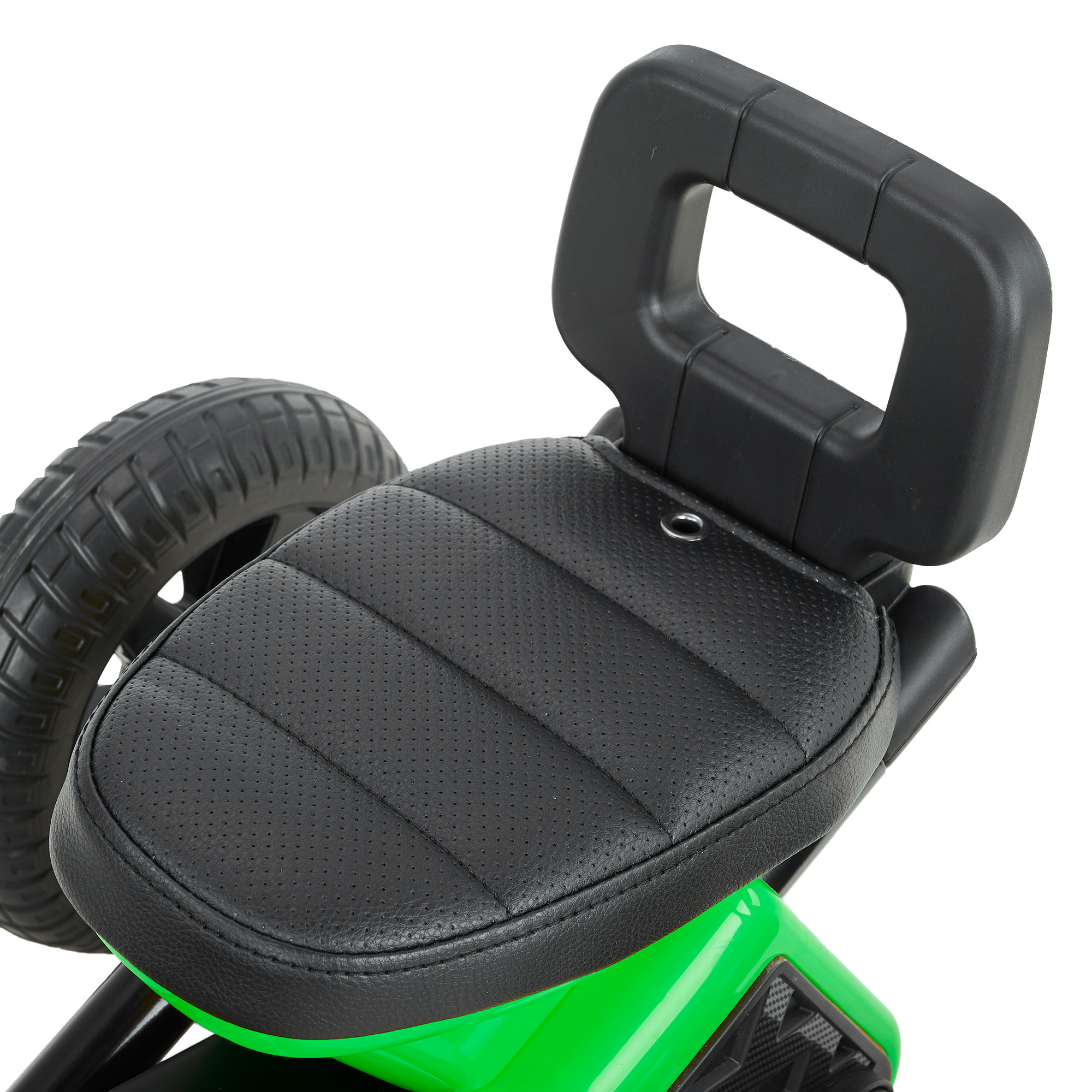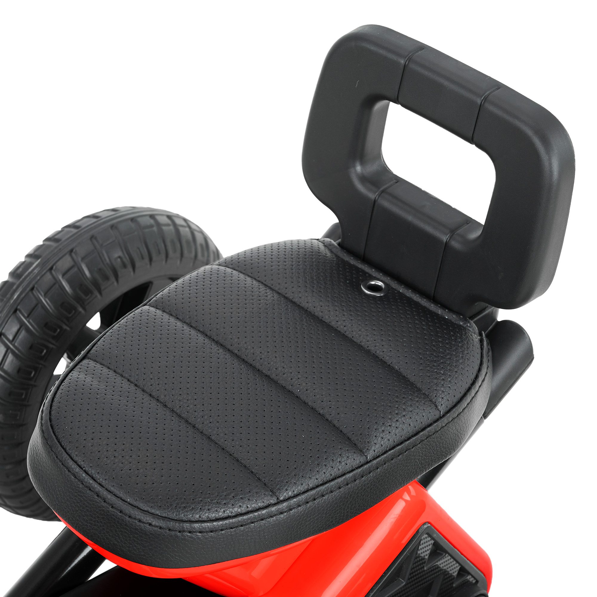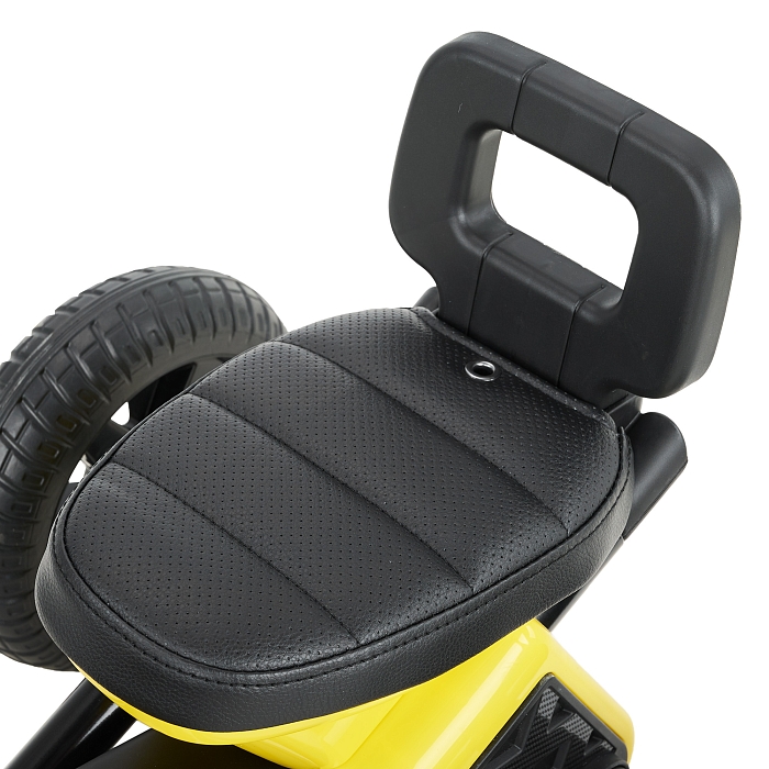 Сиденье из экокожи делает поездки более комфортными, не скользит и приятно на ощупь. Расстояние от сиденья до педали в нижнем положении около 21 см, что подходит детям старше 3-х лет при условии, что ребенок уверенно достает до педалей. Посадочное место имеет ширину примерно 22 см и глубину 17 см, высота от пола до сиденья 28 см - такая посадка удобна для малышей и детей постарше в рамках допустимой нагрузки.