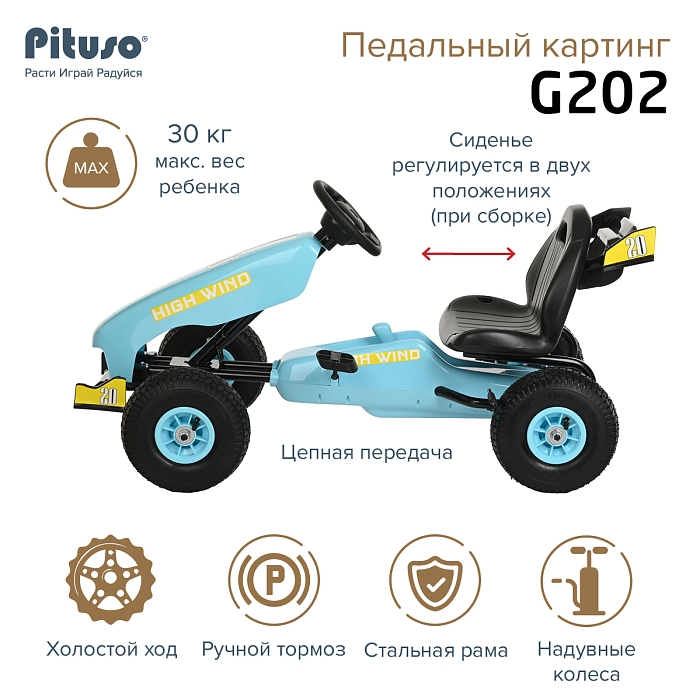 Педальный картинг Pituso G202- это прекрасное сочетание велосипеда и автомобиля.