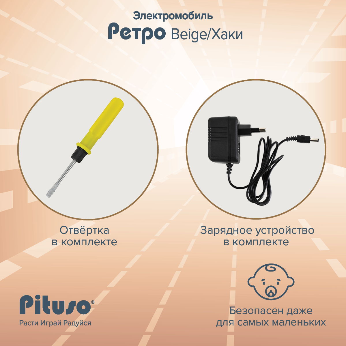 - Тип: детский электромобиль Pituso Ретро (электроквадроцикл-мобиль);