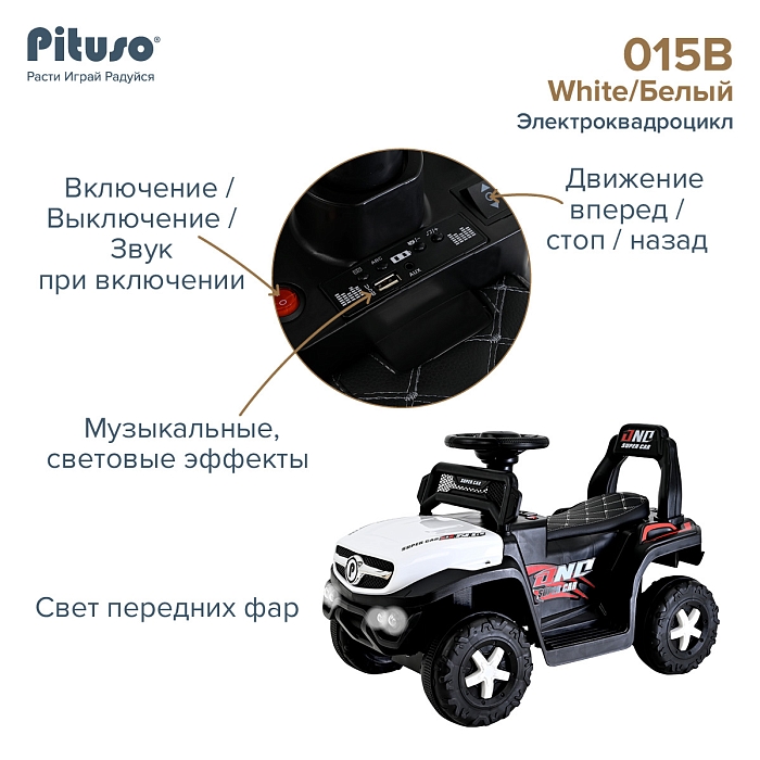 Электроквадроцикл Pituso 015B 6V/4.5Ah,20W*1 White/Белый