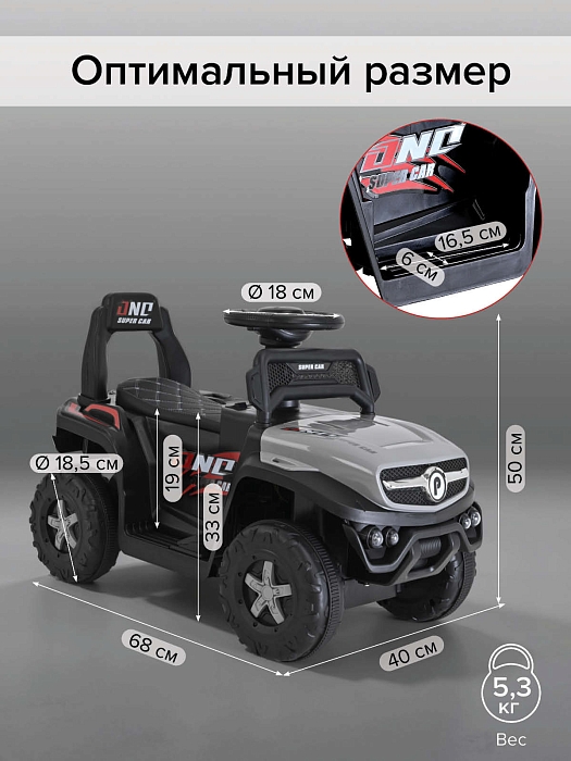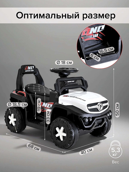 Этот электромобиль станет отличным подарком как для девочки, так и для мальчика.