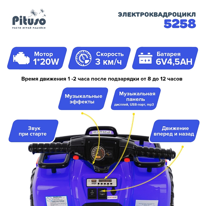 Код товара: 082812Электроквадроцикл Pituso 015B 6V/4.5Ah,20W*16 500 руб.В корзину В наличииБыстрый заказ